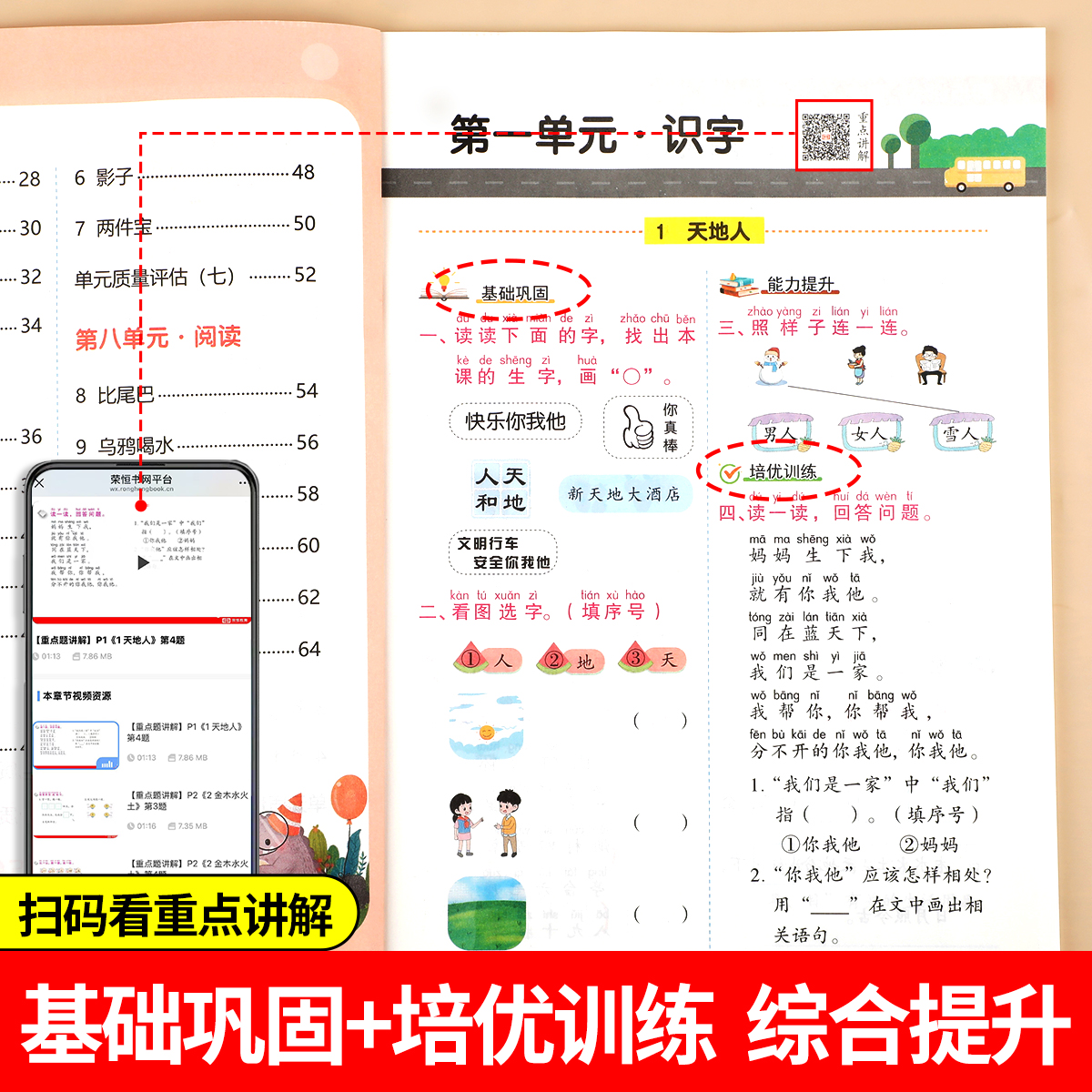 小学生1年级上学期课后练习题预习复习教辅资料综合检测练习册作业本 一年级上册语文数学同步训练全套一课一练人教版 2025新版