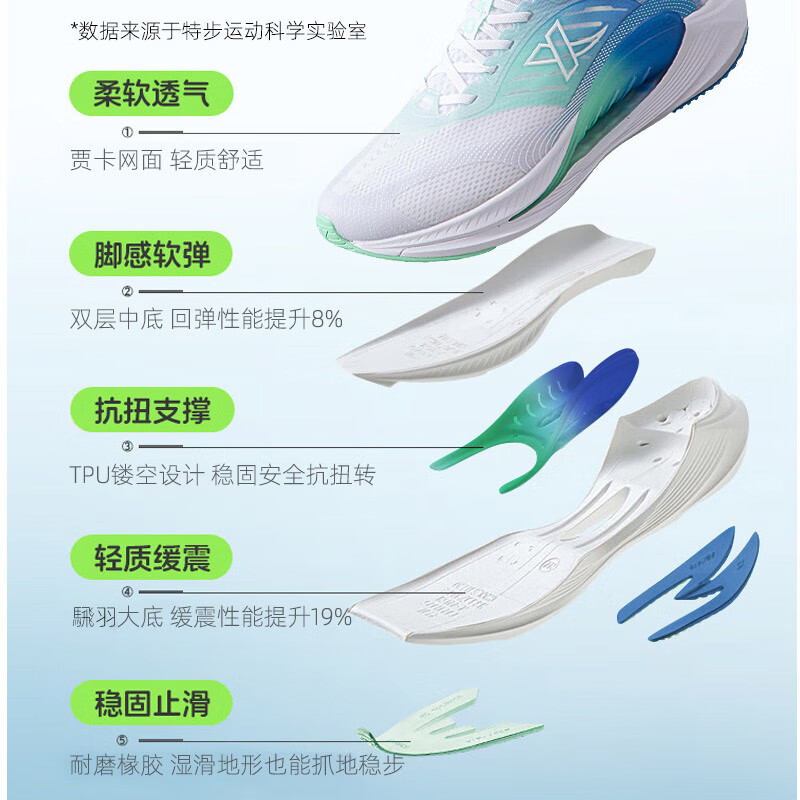 竞速女运动鞋 特步两千公里三代 秋冬网面跑鞋 男鞋 耐磨轻质跑步鞋