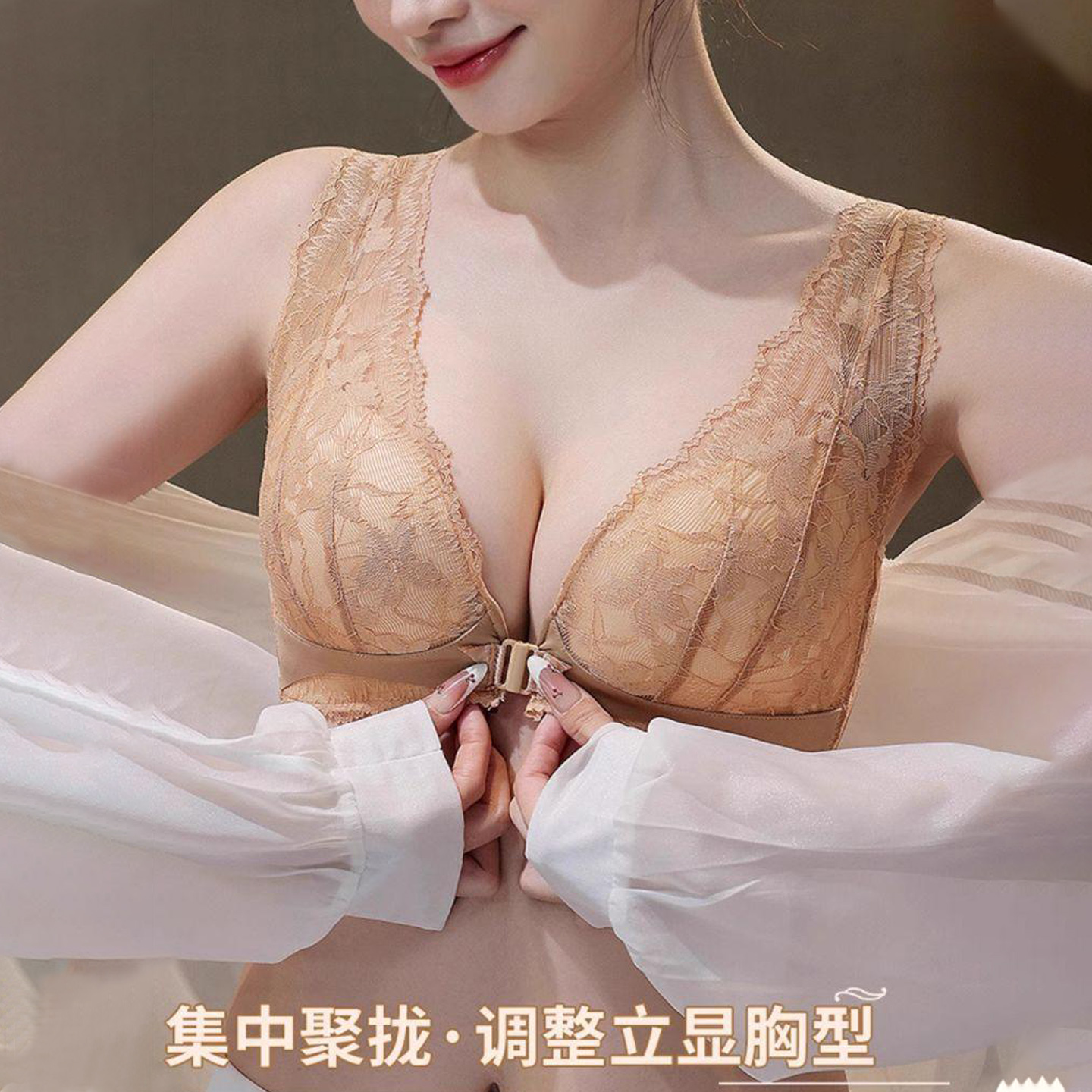 性感纯欲 蕾丝文胸罩套装 好奇蜜斯大胸显小胸防下垂内衣女薄款 法式