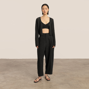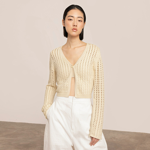 开衫 322WORKHOUSE短款 镂空长袖 秋季 B312 v领针织上衣女士2025新款