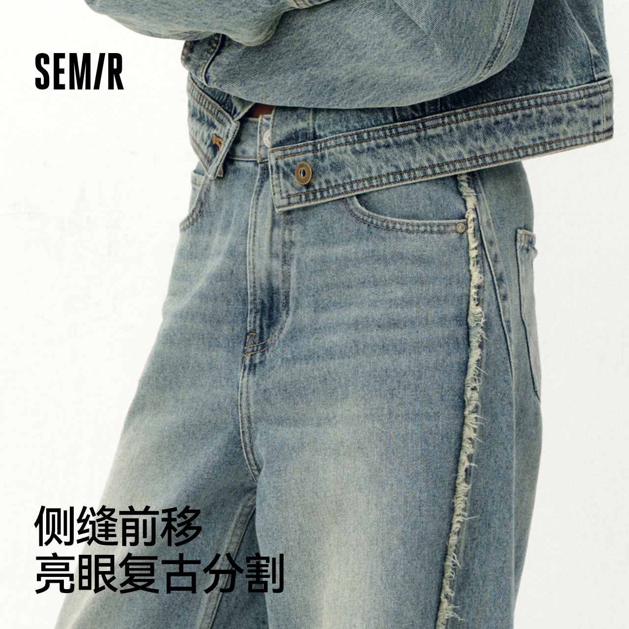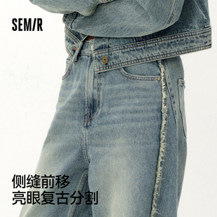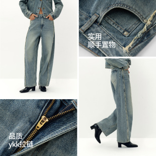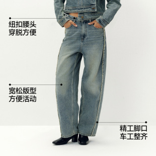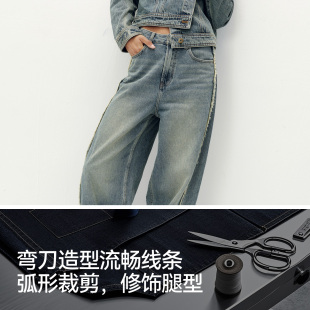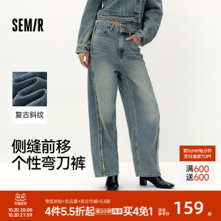 商场同款 新款 森马牛仔裤 潮流2025秋季 做旧长裤 女显瘦宽松弯刀裤