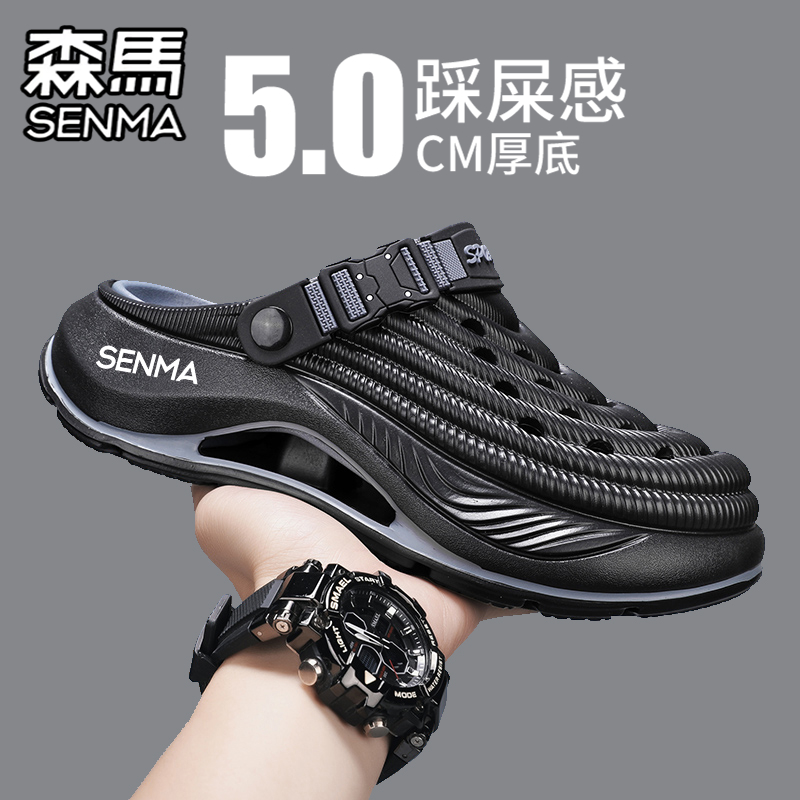 户外涉水沙滩凉鞋 森马洞洞鞋 两用男士 外穿运动防滑包头拖鞋 男夏季