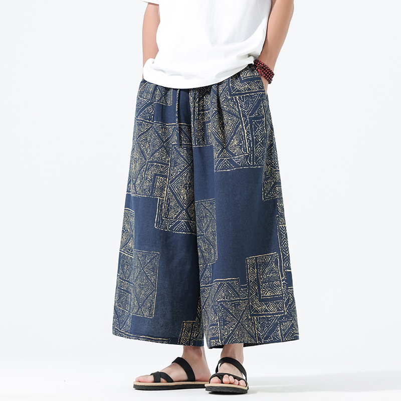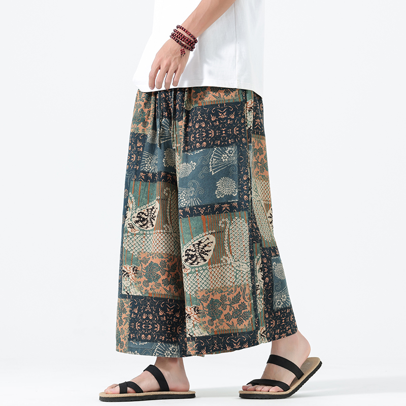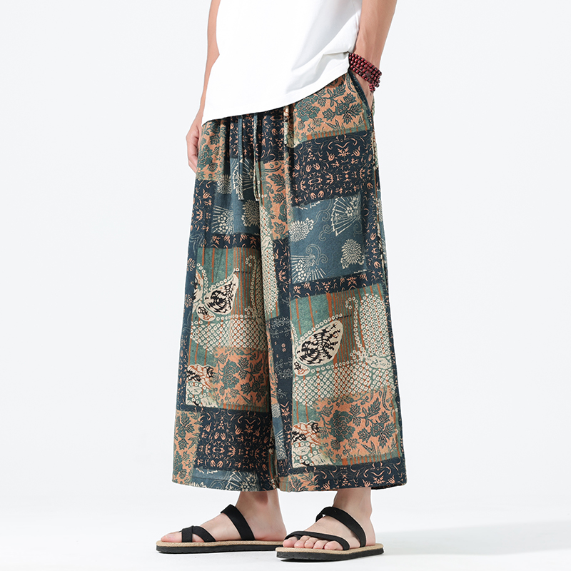 子男夏季 九分亚麻休闲裤 薄款 潮牌大码 八分阔腿裤 民族风棉麻七分裤