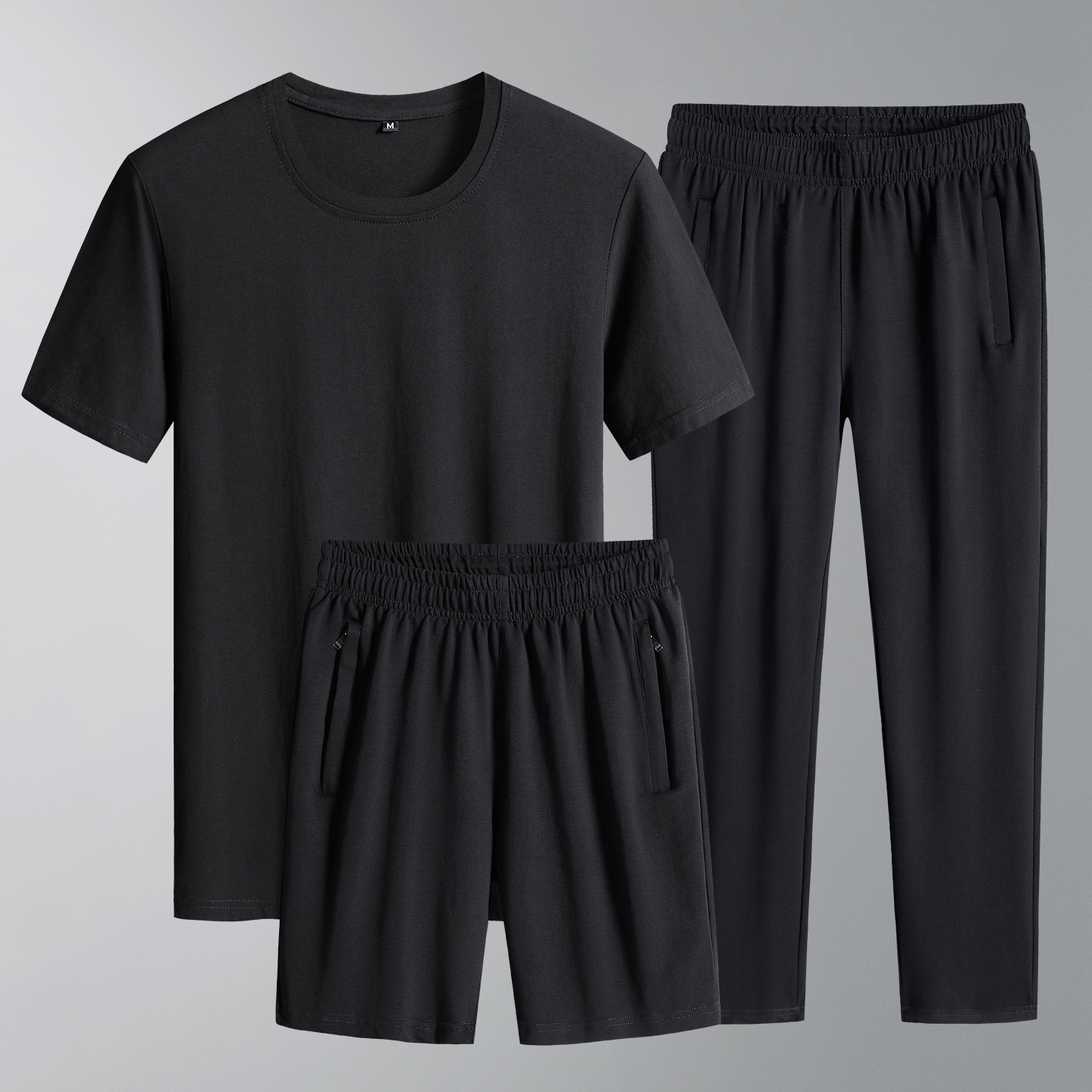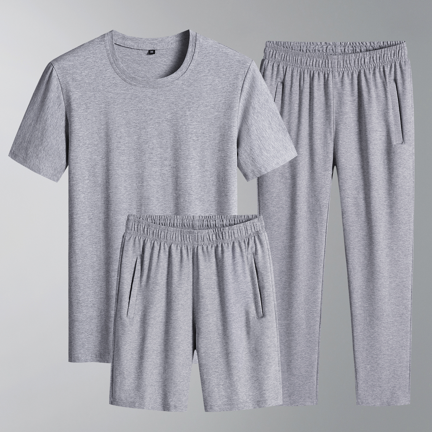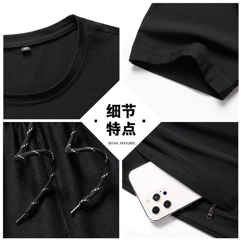 运动套装 男士 宽松纯棉圆领短袖 T恤爸爸休闲直筒短裤 夏季 长裤 新款