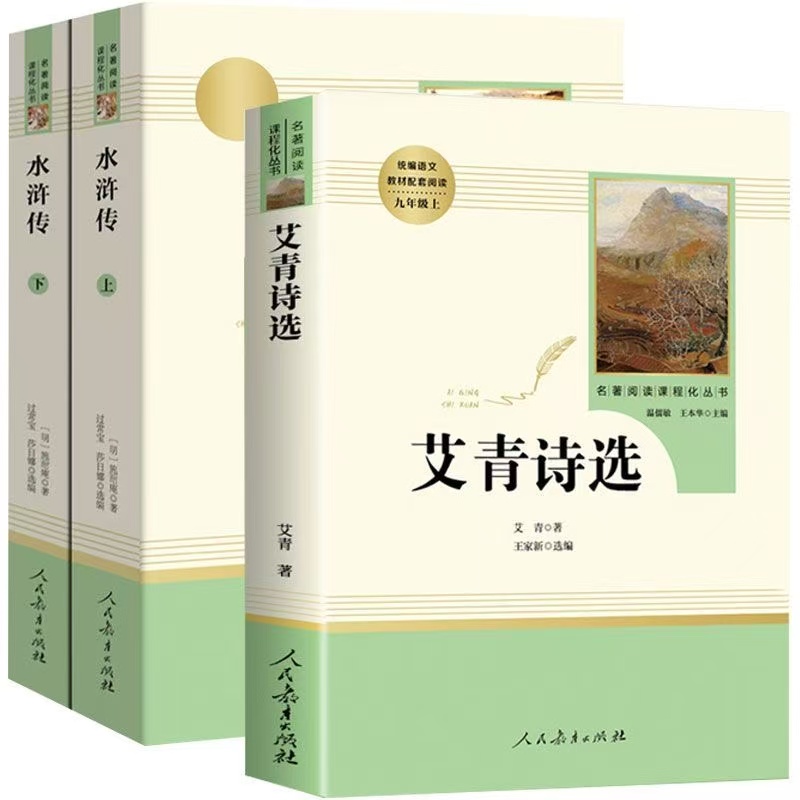 社人教版 唐诗三百首儒林外史人民教育出版 初中生九年级上册课本全套必读课外阅读书籍名著初三教育 完整版 艾青诗选和水浒传原著正版