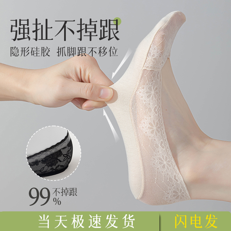 高跟鞋 纯棉底2025新款 袜子 薄款 蕾丝船袜女浅口隐形防滑不掉跟夏季