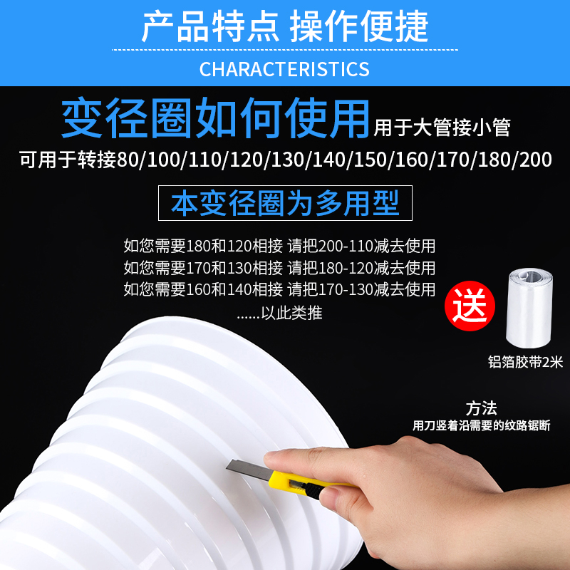 抽油烟机铝箔排烟管转换接头排风管变径器大小头厨房止逆阀变径圈
