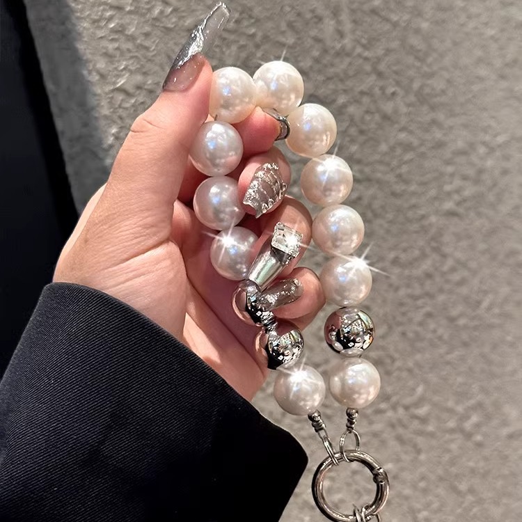 饰挂件链绳夹片挂饰手腕绳女 链条手机挂绳挂链手机壳钥匙扣装 呆芒高端原创个性 创意珍珠手工串珠手腕手提短款