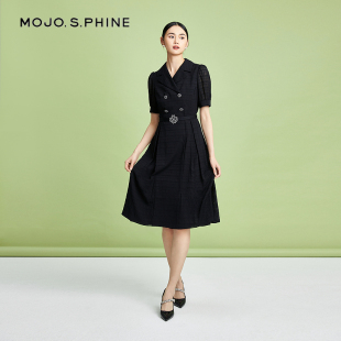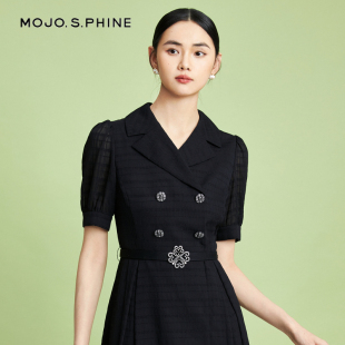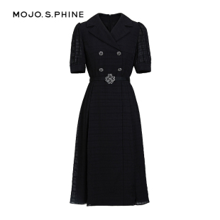 优雅气质短袖 春夏泡泡袖 长裙 收腰连衣裙2024年新款 MOJO莫佐修身