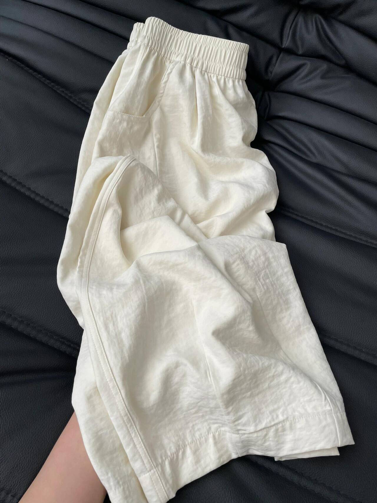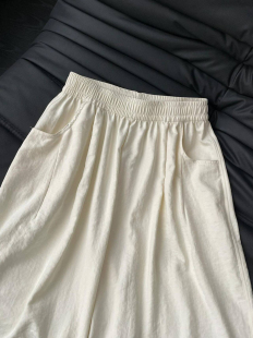 白色百褶裙带口袋夏小个子松紧高腰弹力短裙女胖mm大码 显瘦半身裙
