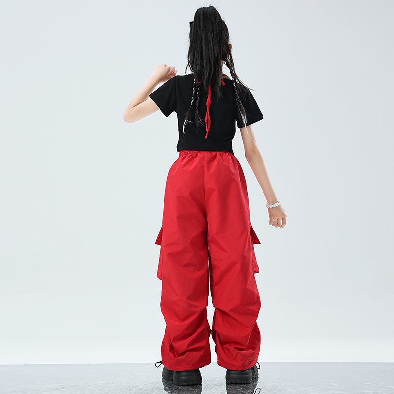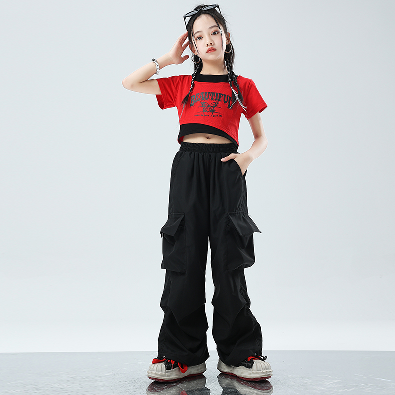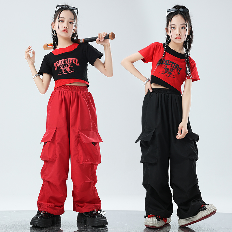女童爵士舞服装 洋气女孩露脐走秀演出服潮 hiphop街舞嘻哈练功套装