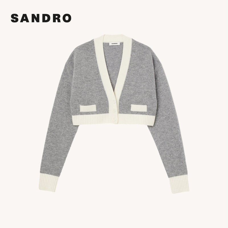 简约气质灰色经典 法式 V领撞色针织上衣 Outlets秋冬女装 SANDRO