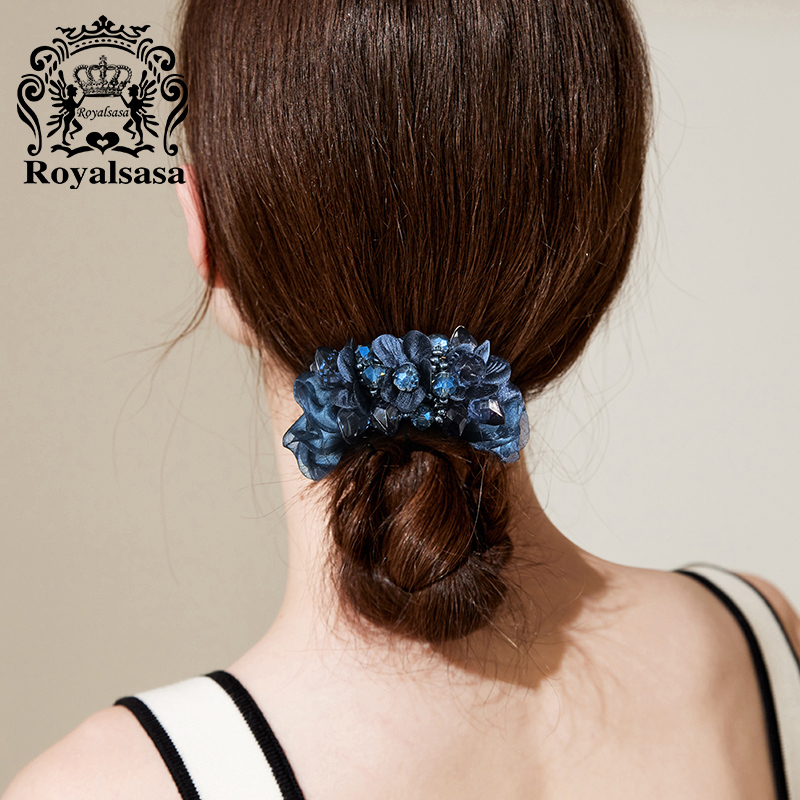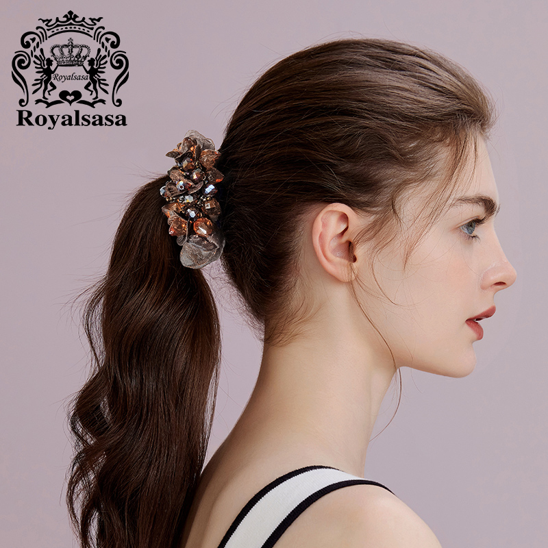 皇家莎莎韩国发饰绢纱头花水晶盘发丸子头头绳马尾辫皮筋大肠发圈