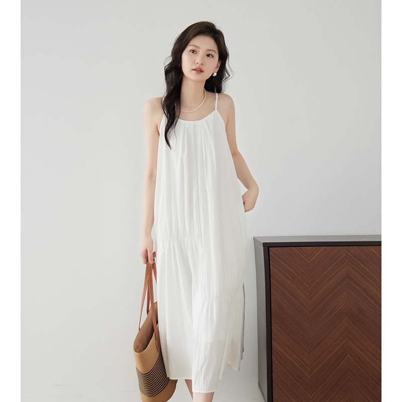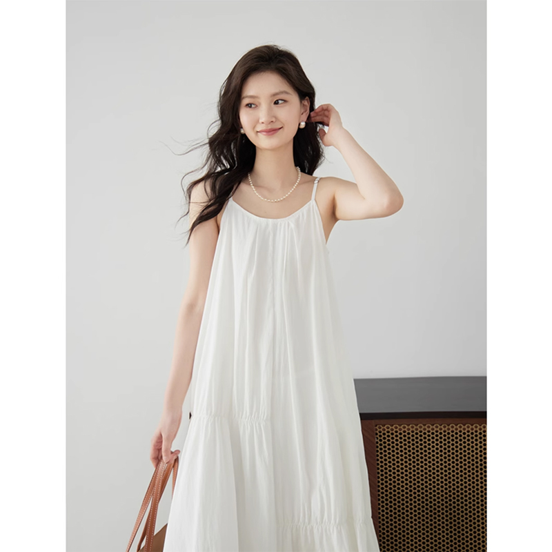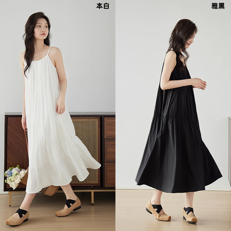 嘉茱莉新款 天丝吊带连衣裙女吊带裙垂感连衣裙小个子吊带长裙 法式