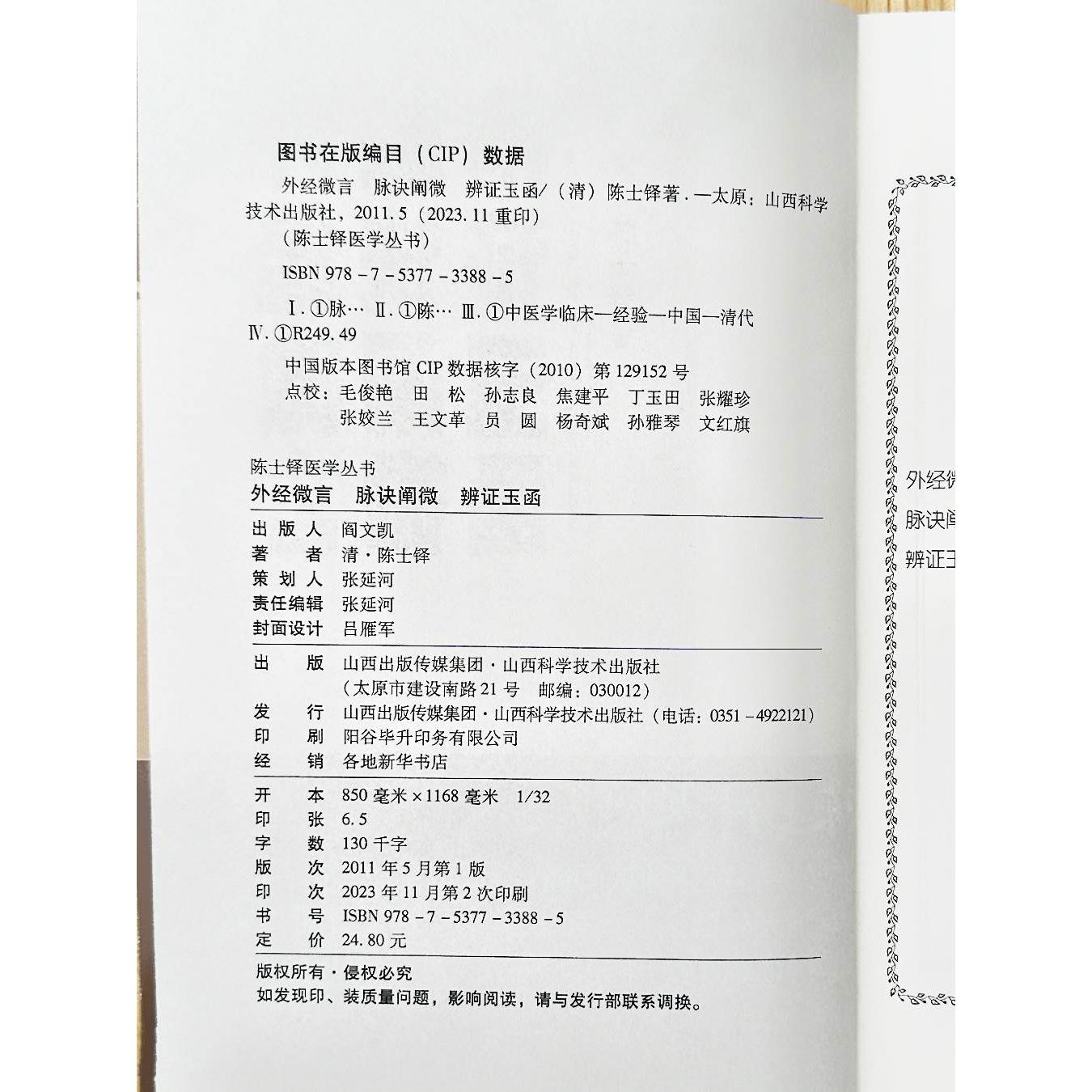 是讲医学理论 外经微言 脉诀阐微 是讲脉法 专书适合药学研究书籍 官方正版 辨证玉函是杂病 外经微言脉阐微辨玉函清陈士铎