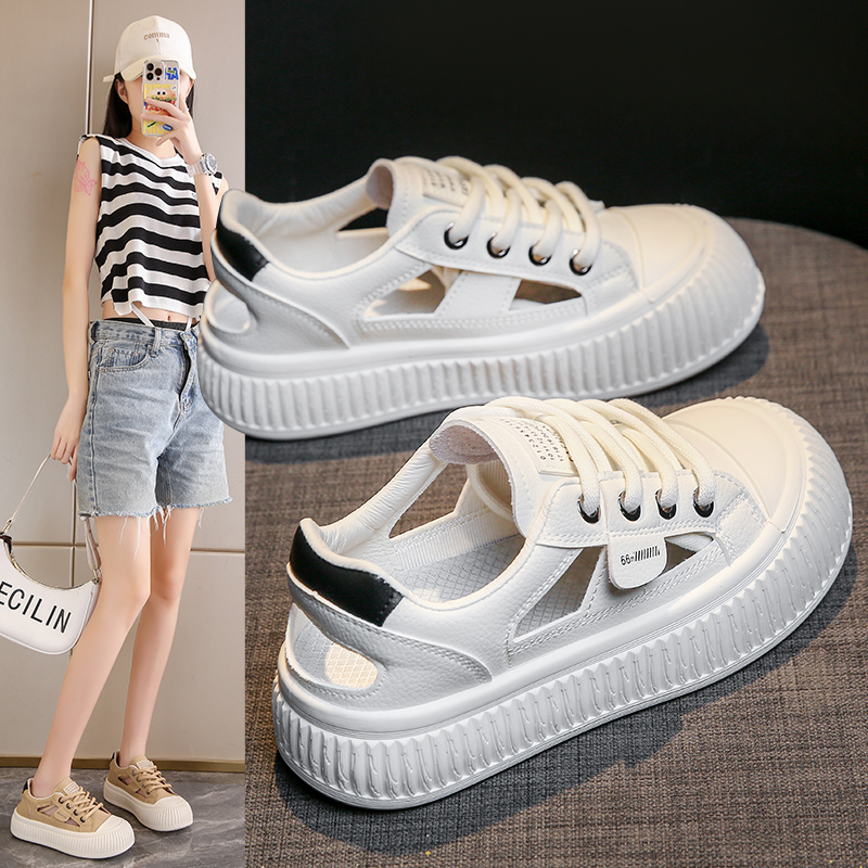 女2025新款 子包头凉鞋 夏季 平底休闲学生运动鞋 学生板鞋 镂空小白鞋