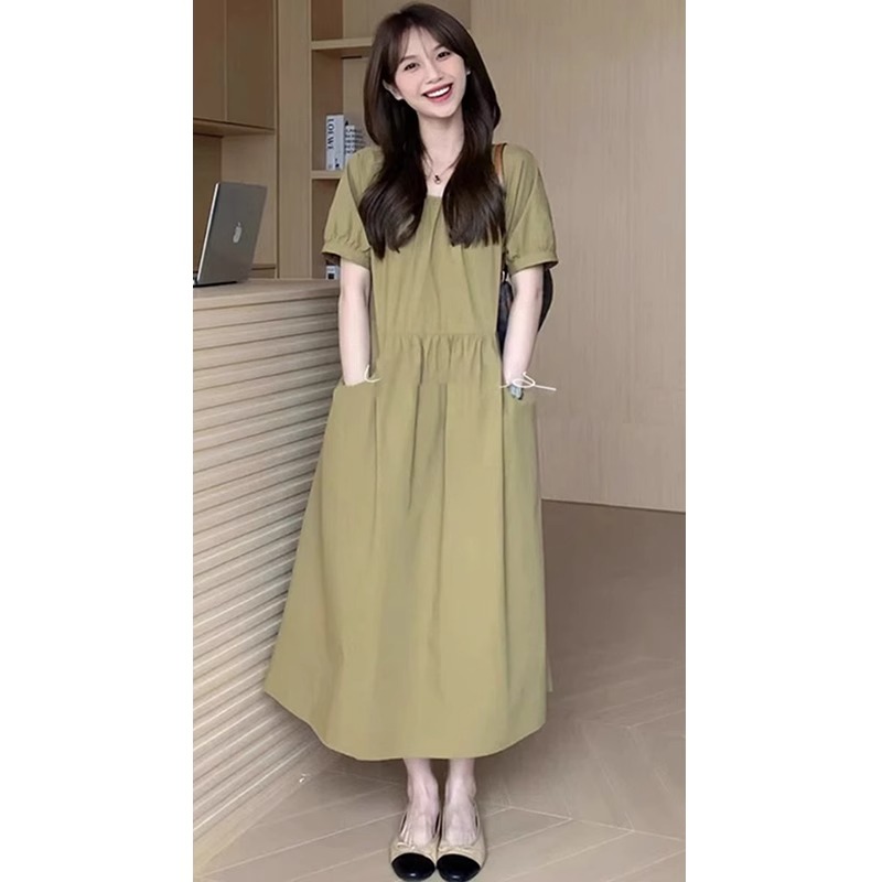 收腰性感褶皱长裙 网纱连衣裙女25年夏季 XZY 微胖纯欲度假风喇叭袖