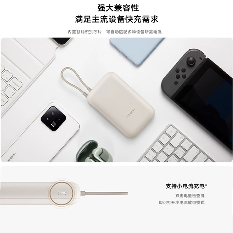 22.5W自带线双向快充小巧超大容量便携移动电源适用于华为小米苹果15手机 小米自带线充电宝20000 3C认证