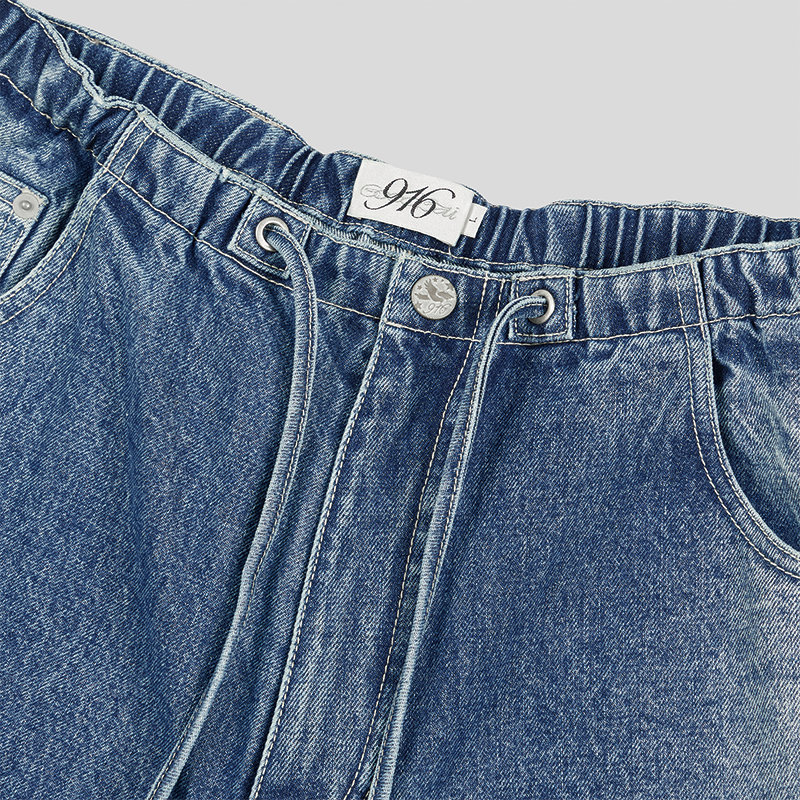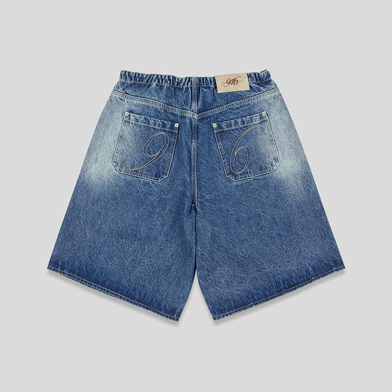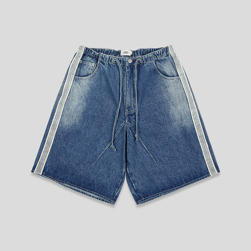 logo绣花侧边织带牛仔短裤 GOODBAI 916