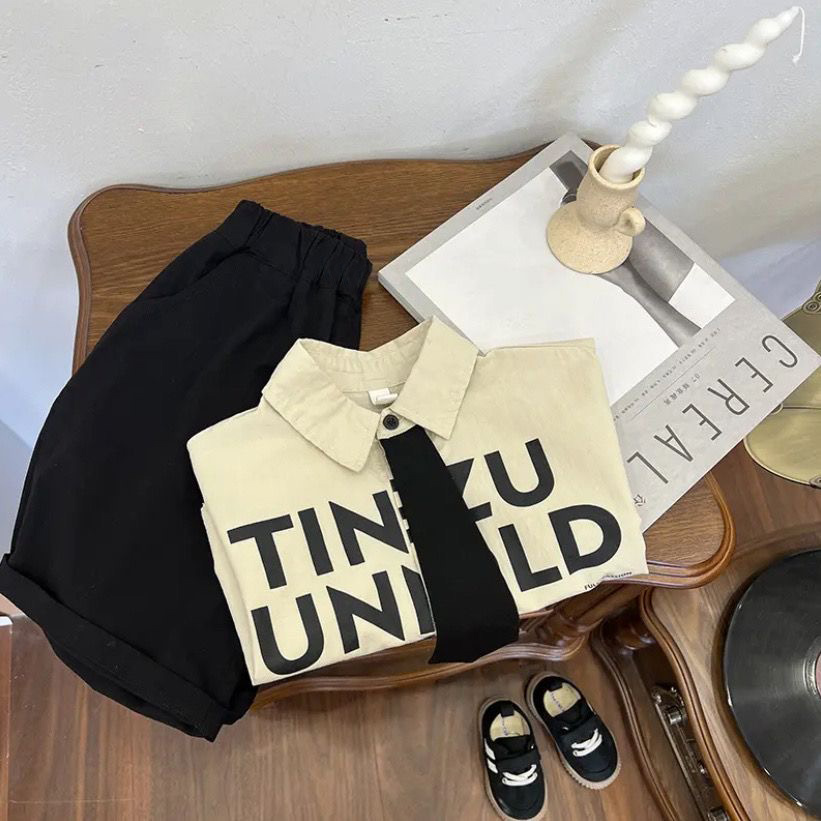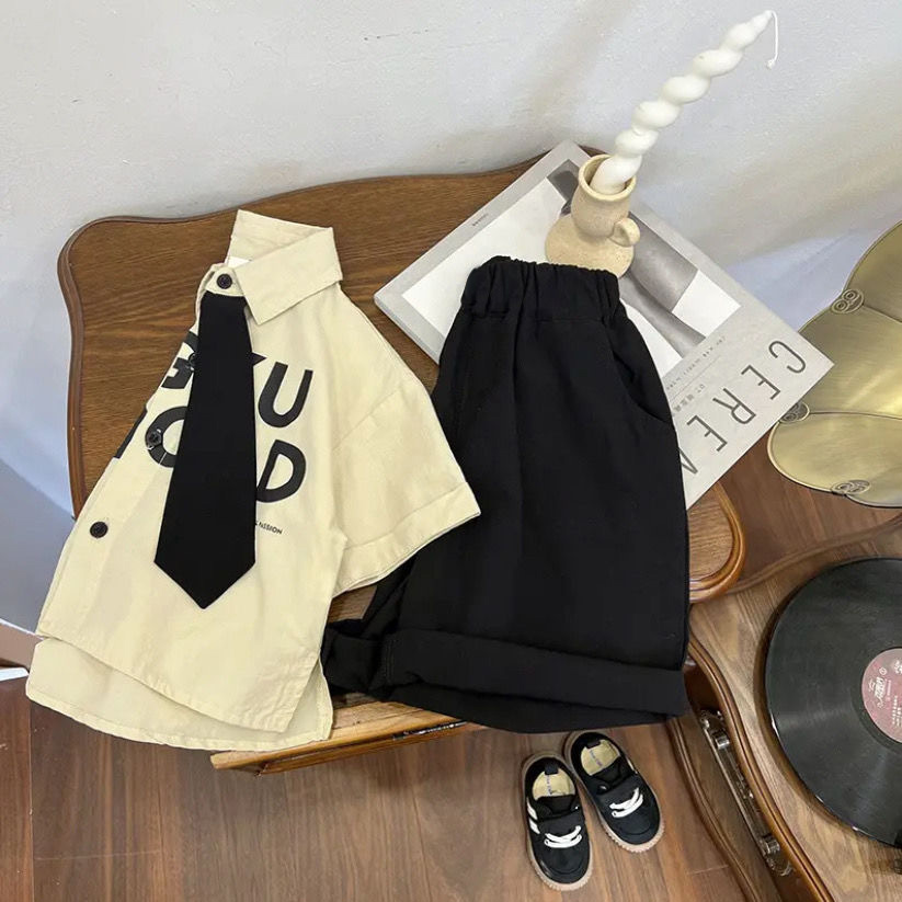 新款 韩版 儿童短袖 男童洋气夏装 夏季 2024夏季 帅气爆款 两件套潮 衬衫