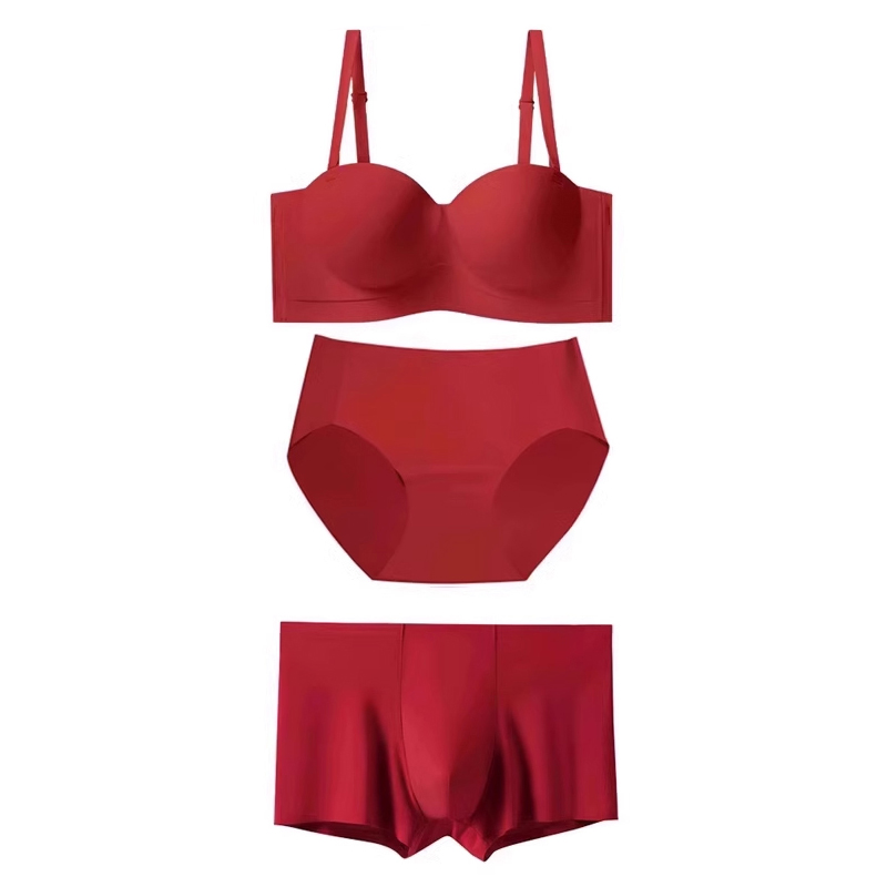 男士 情侣一对拖鞋 女生新婚聚拢胸罩 新娘新郎套装 红色结婚内衣内裤