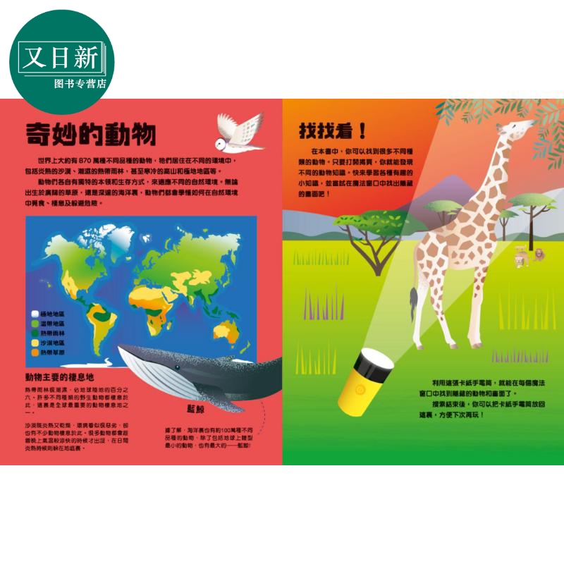 亲子绘本 认知识物 知识百科图画书 科普手电筒翻翻书 新雅文化出版 港台原版 精品童书儿童读物 又日新 野生动物在哪儿