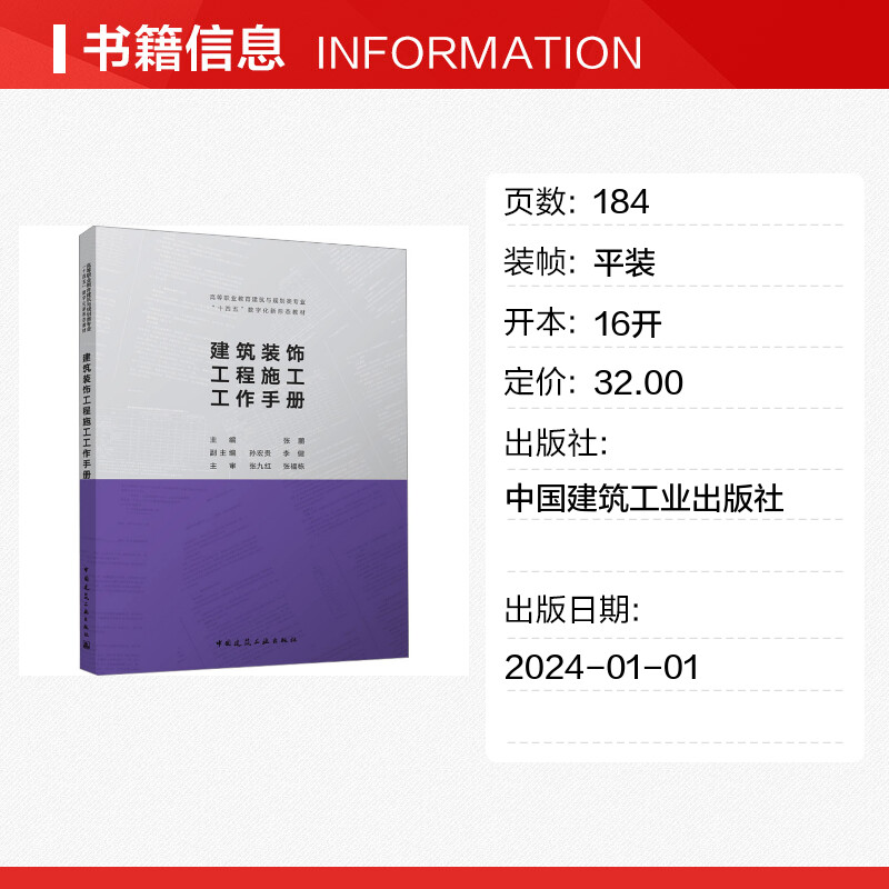 大学教材大中专 社 张鹏 中国建筑工业出版 图书籍 新华书店正版 编 李健 孙宏贵 饰工程施工工作手册 建筑装