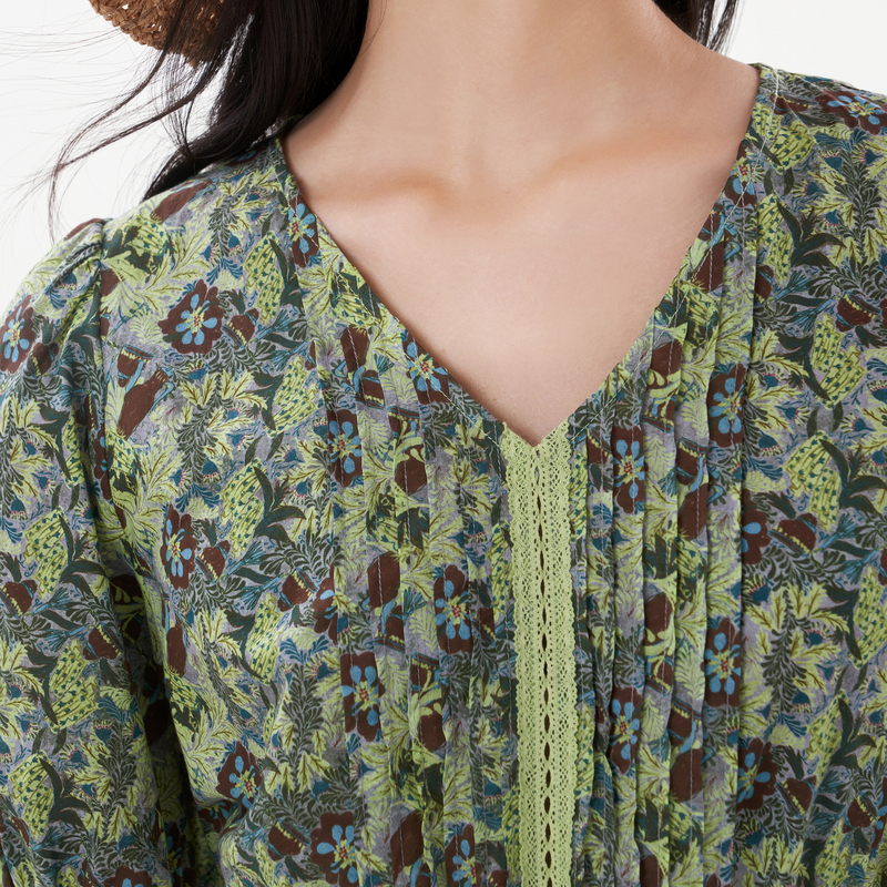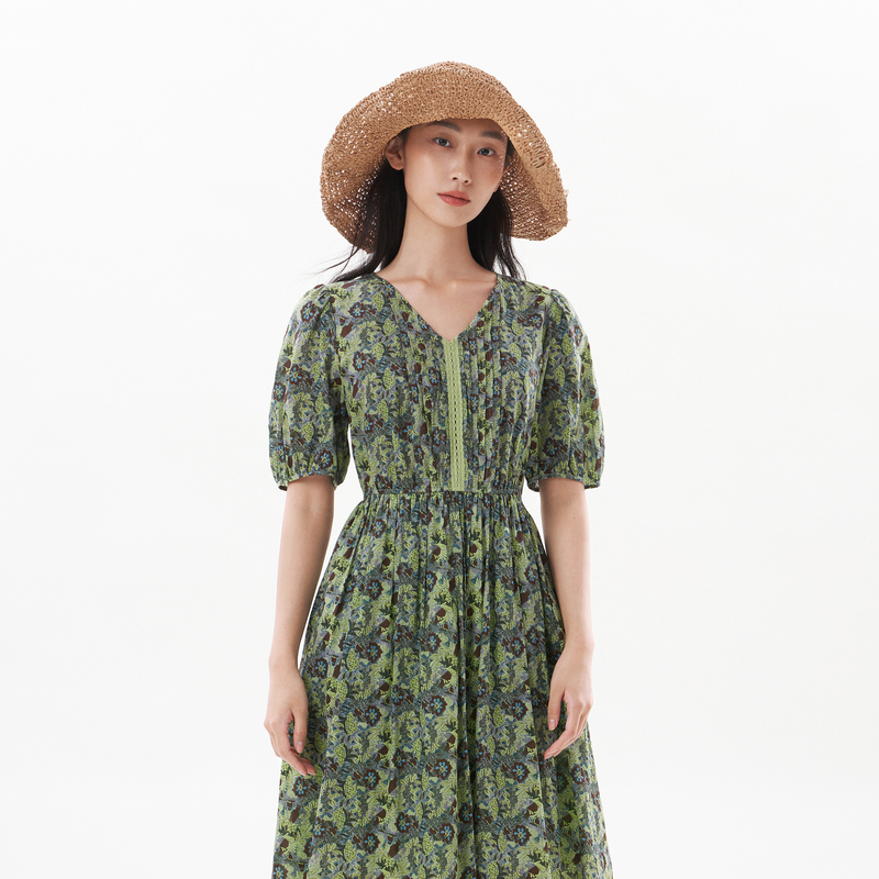 V领气质收腰显瘦短袖 易菲法式 Yifini 复古印花连衣裙女 专柜同款