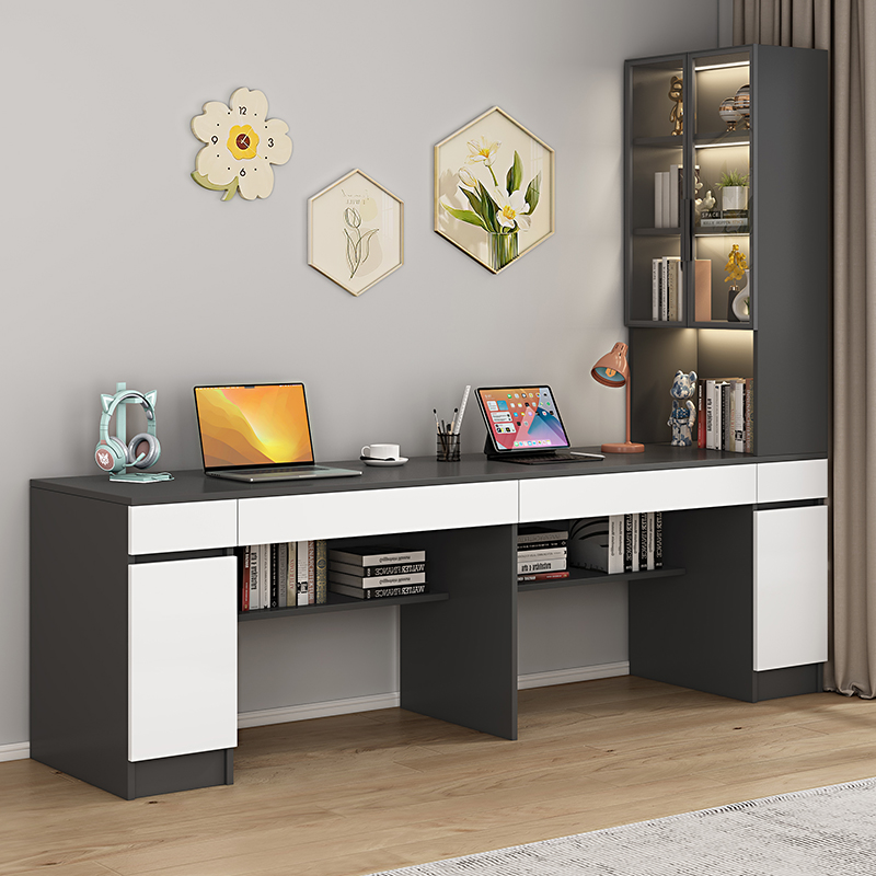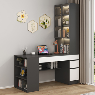 书桌新款 书柜一体简约学习桌书架组合轻奢家用双人电脑桌写字台