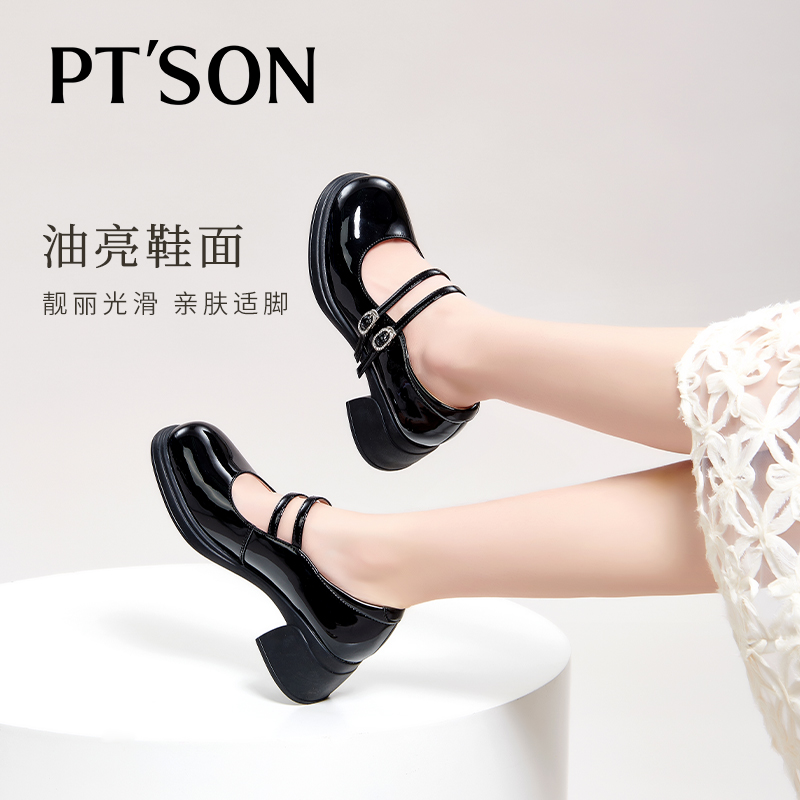 女配裙子鞋 高曼尔同款 女中跟jk小皮鞋 粗跟单鞋 百田森玛丽珍高跟鞋