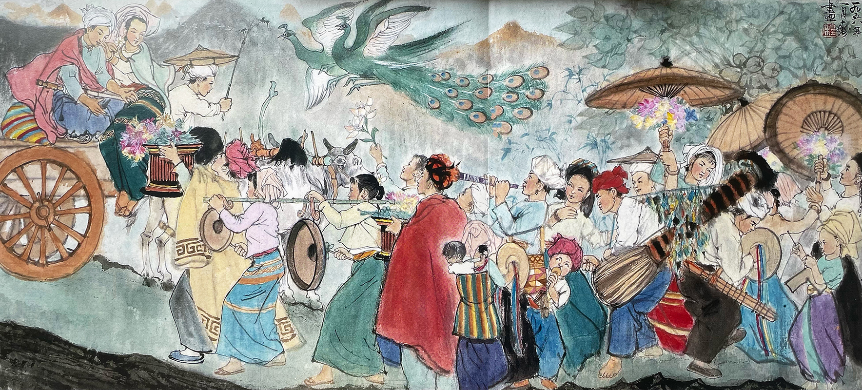 程十发 精装 41幅傣族民间叙事长诗彩色连环画 结合西画构图和国画水墨风 名著 孔雀公主 大师绘▪中国经典 召树屯和喃婼娜