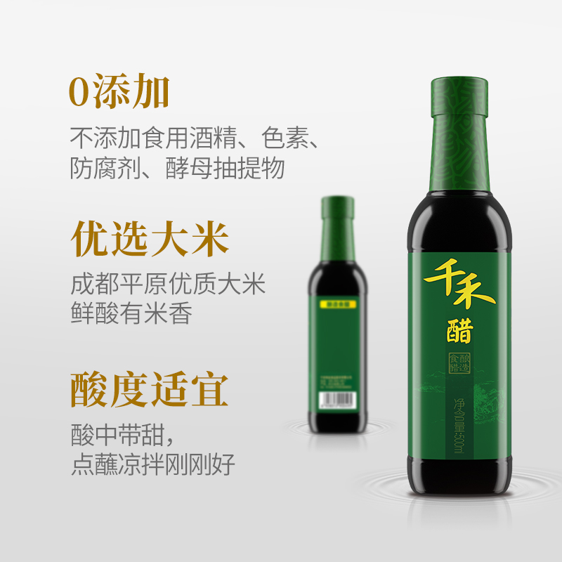 千禾醋500ml瓶零添加酿造食醋凉拌饺子蘸料家庭厨房调味品优质