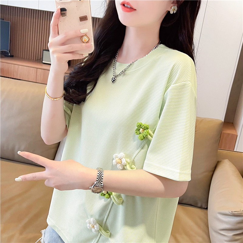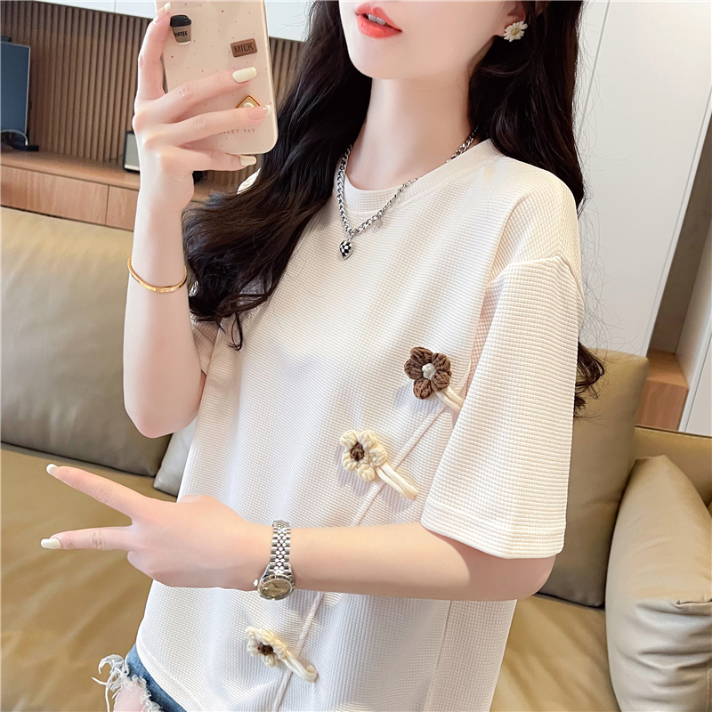 韩版 2025新款 宽松设计感小众立体花朵上衣潮 t恤女夏季 不规则短袖