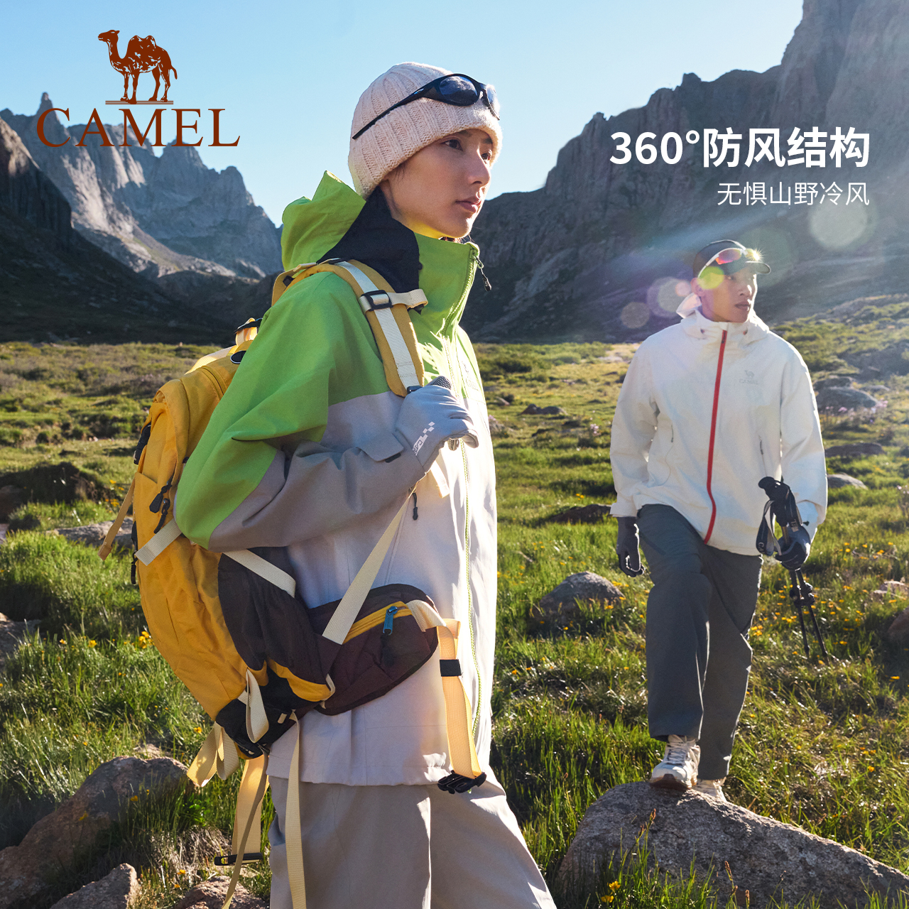 骆驼户外谷子黄色冲锋衣女款 三合一防水防风登山服三防夹克外套男
