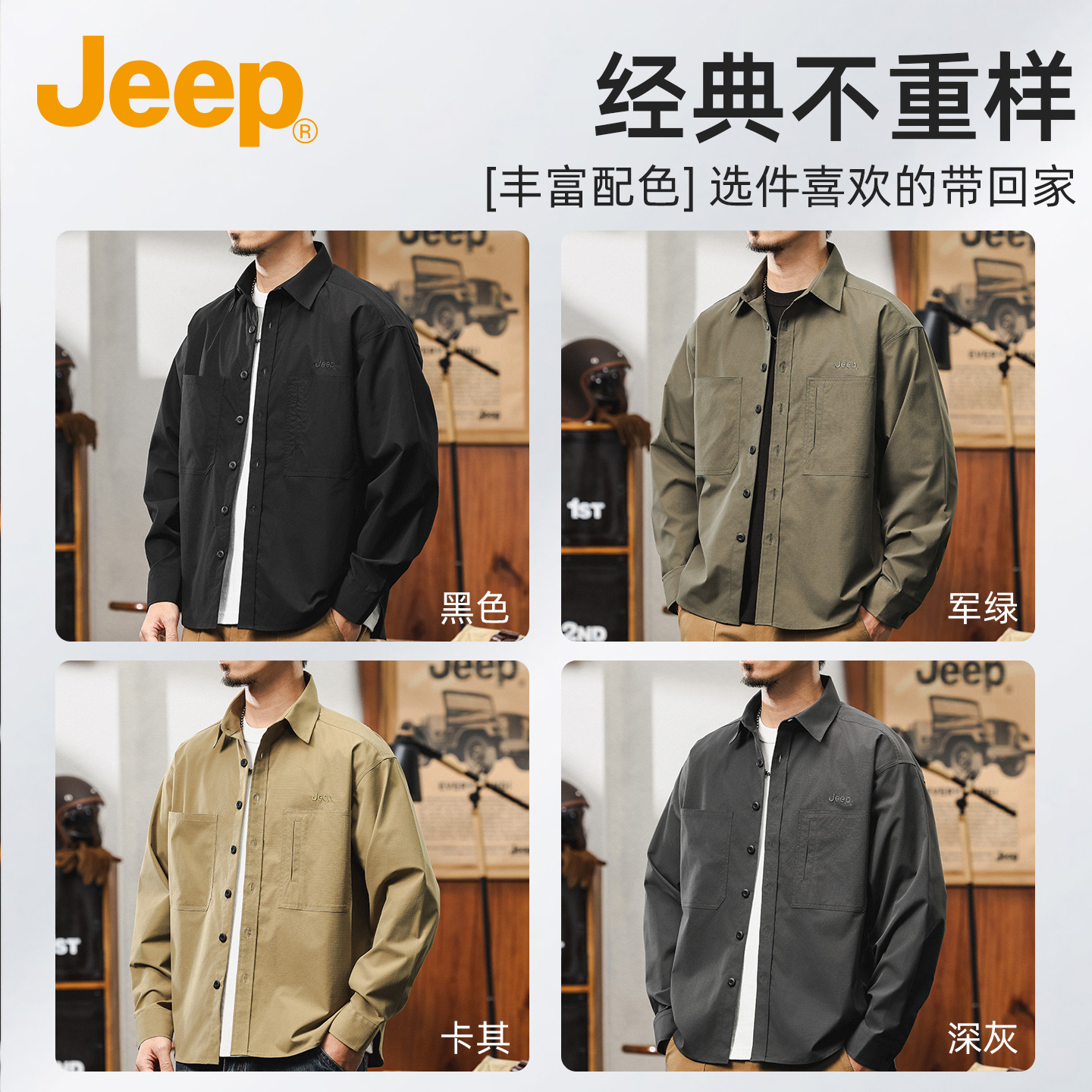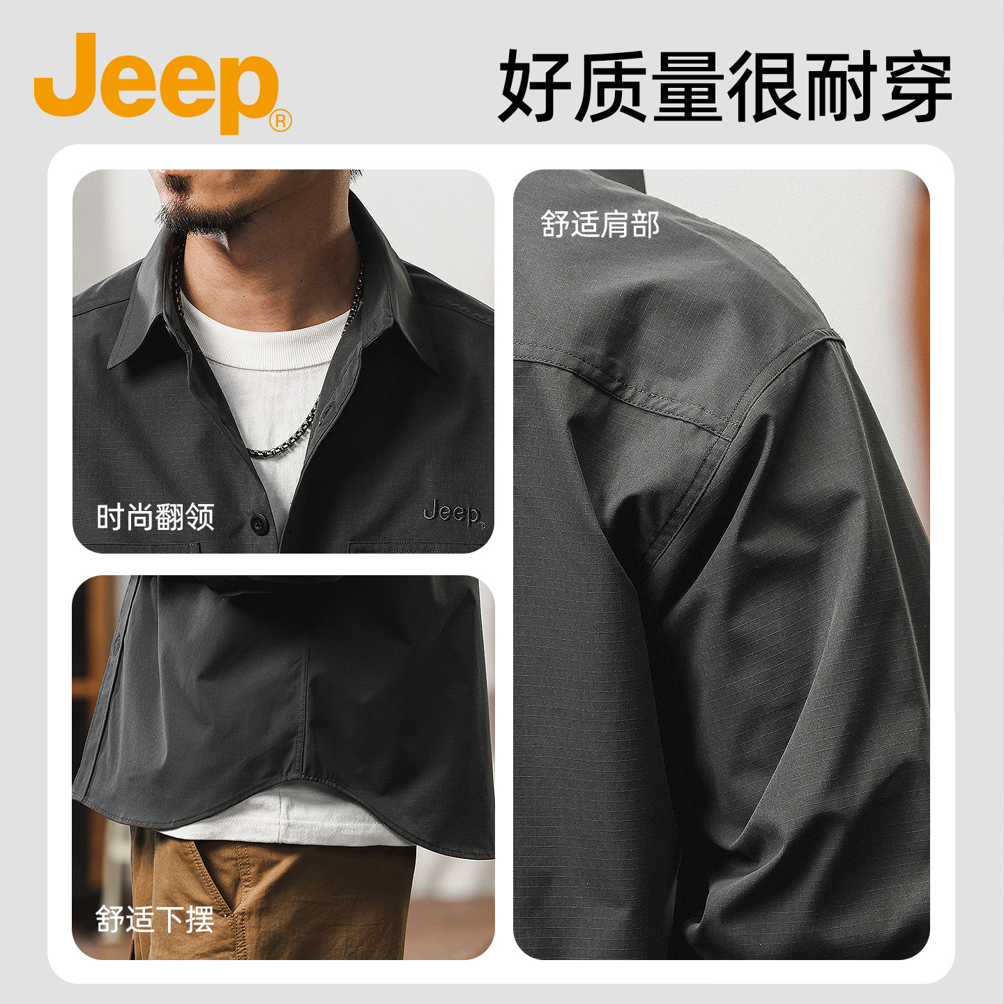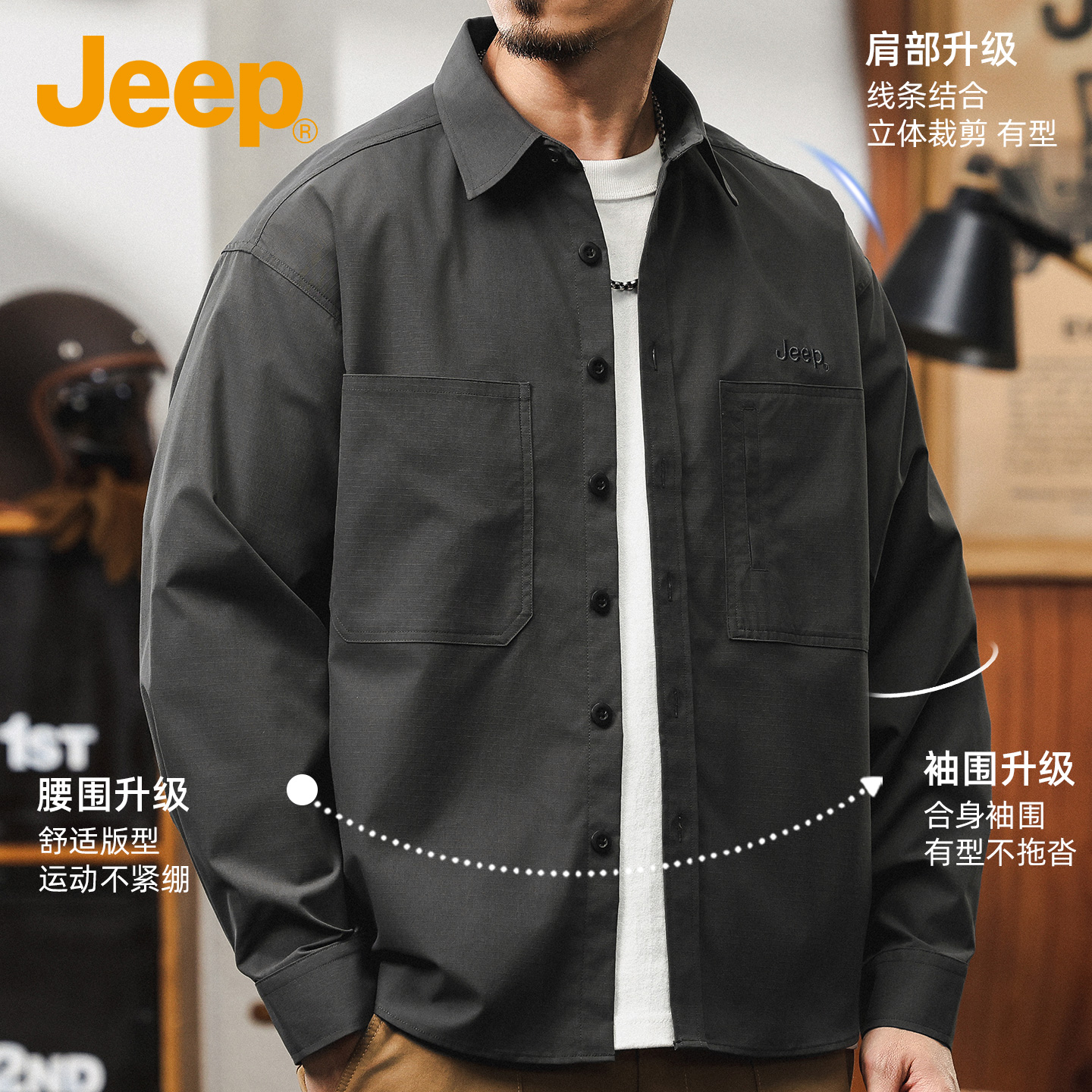 外套秋季 男款 宽松大码 抗皱美式 高级 jeep吉普长袖 休闲衬衣新款 衬衫