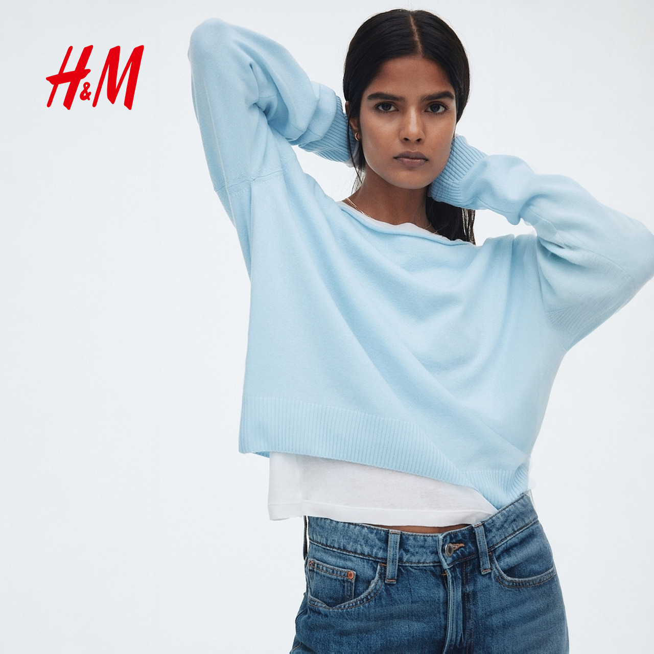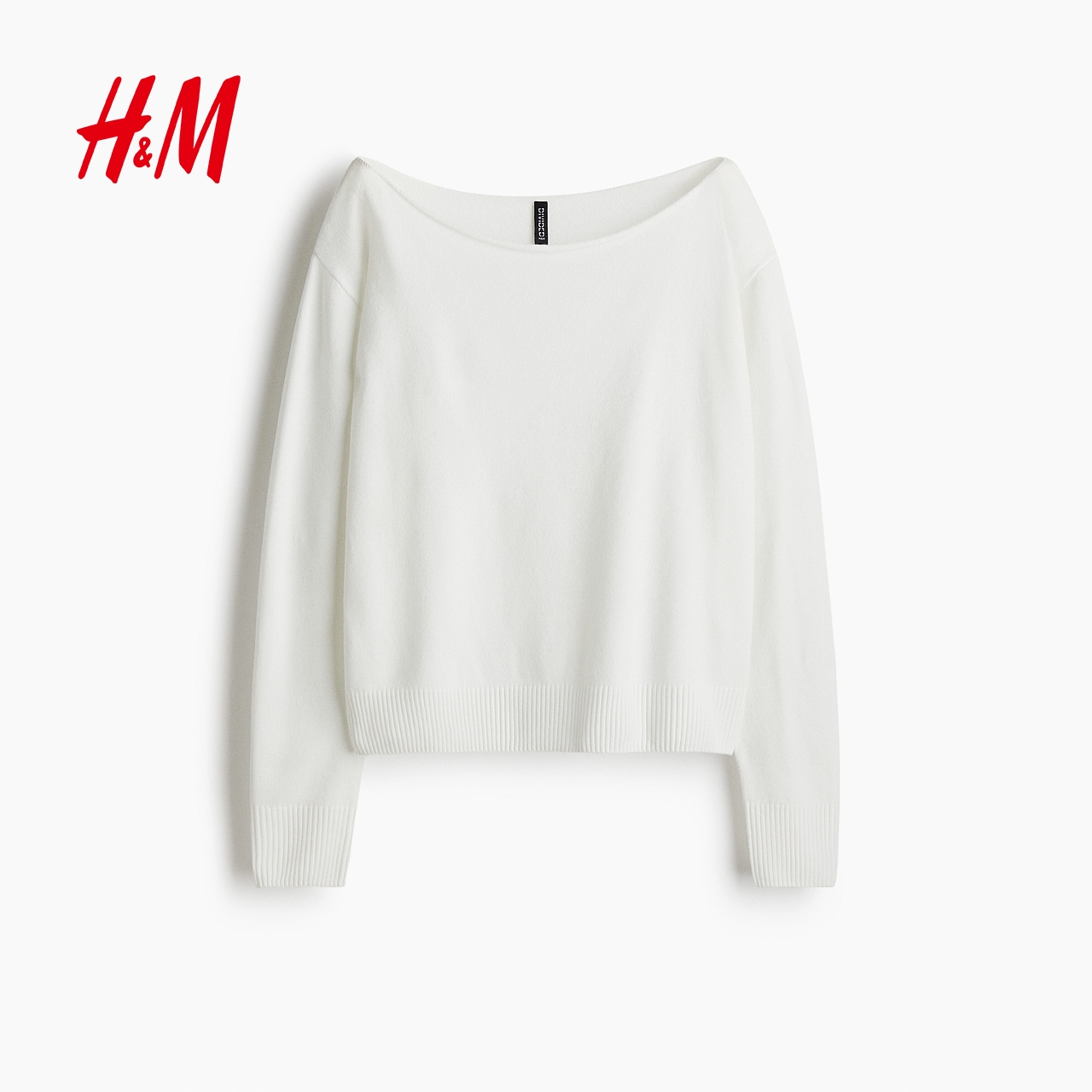 露肩毛衣落肩宽松长袖 HM女装 新款 2025年秋季 上衣1302636 毛针织衫