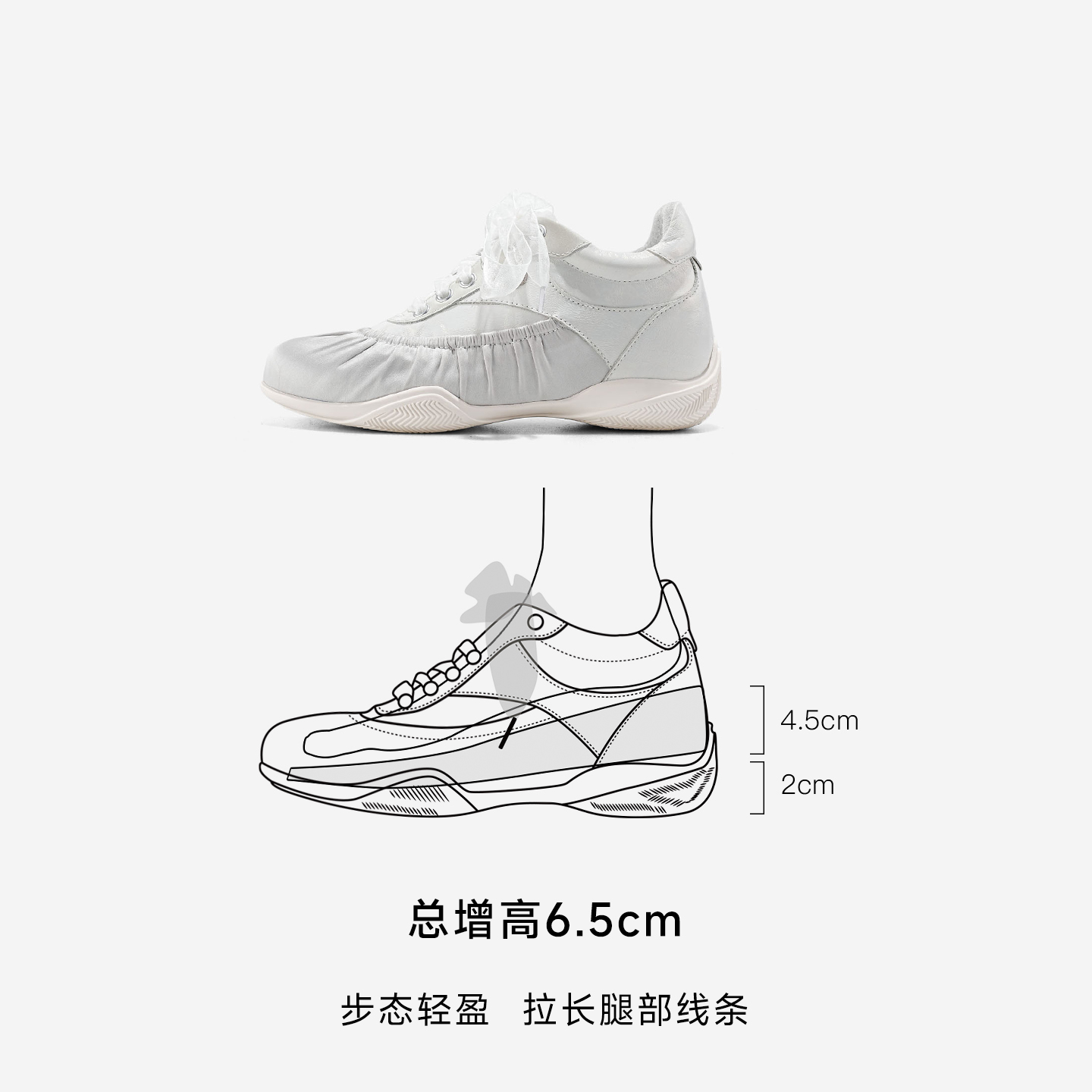iiJin艾今25秋新品 女341QTD 6.5cm薄底内增高轻便芭蕾风休闲小白鞋