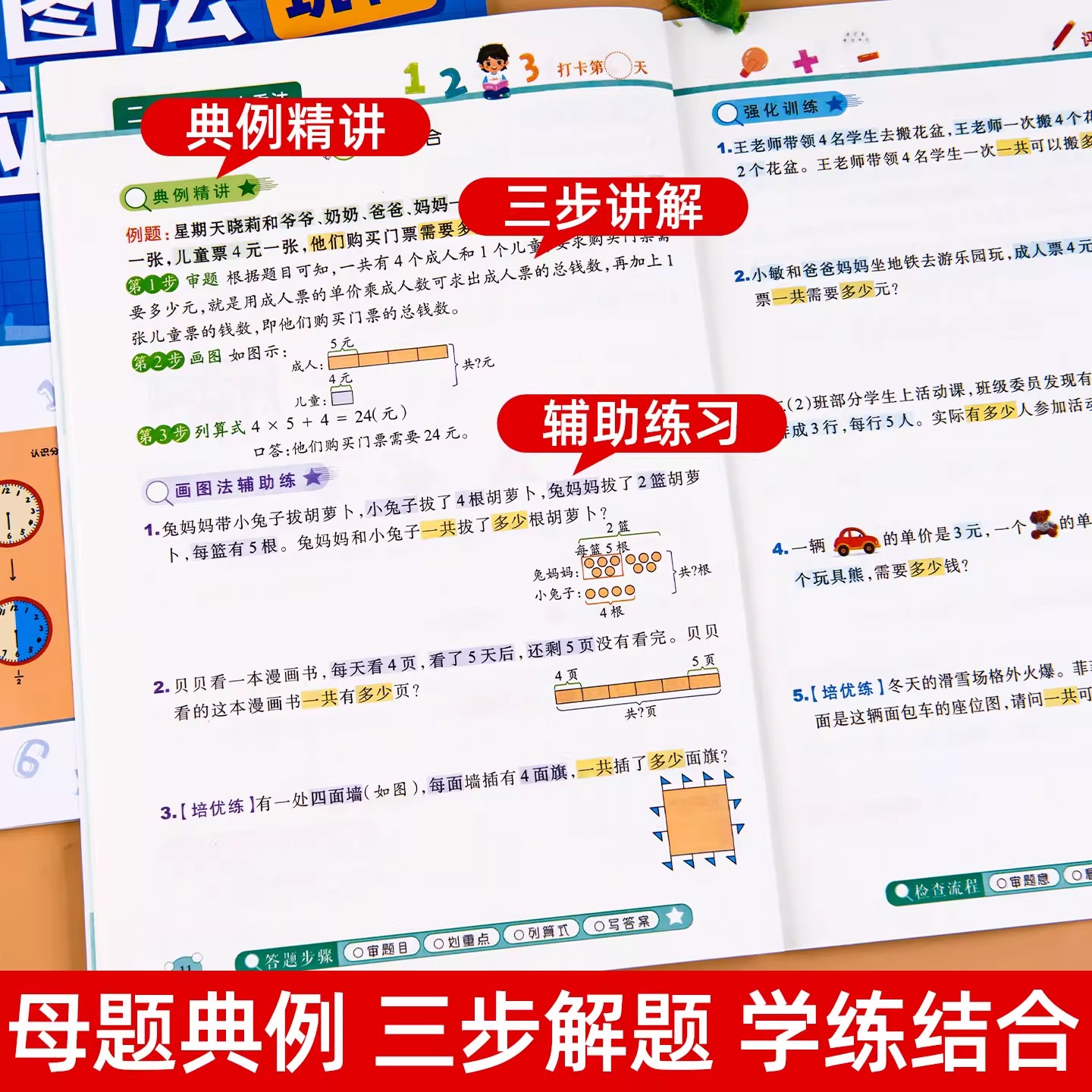 2025新版 小学数学画图法玩转应用题天天练二三四五六年级数学专项思维强化训练教材同步举一反三图解计算应用题表内乘除法混合运算