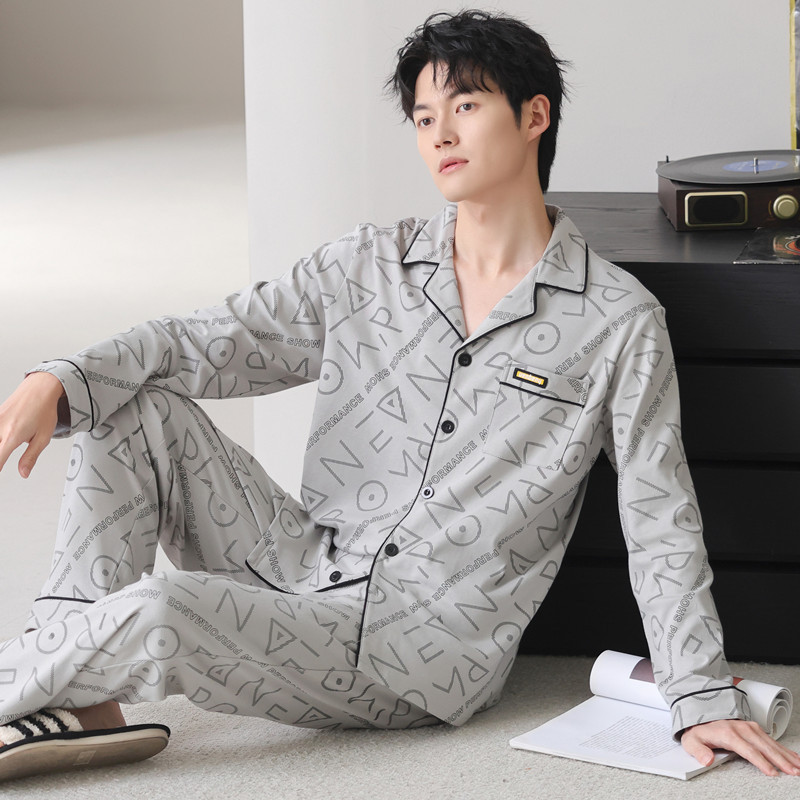 睡衣男士 大码 纯棉春秋男生套装 春季 休闲家居服夏 青年男款 芬腾长袖