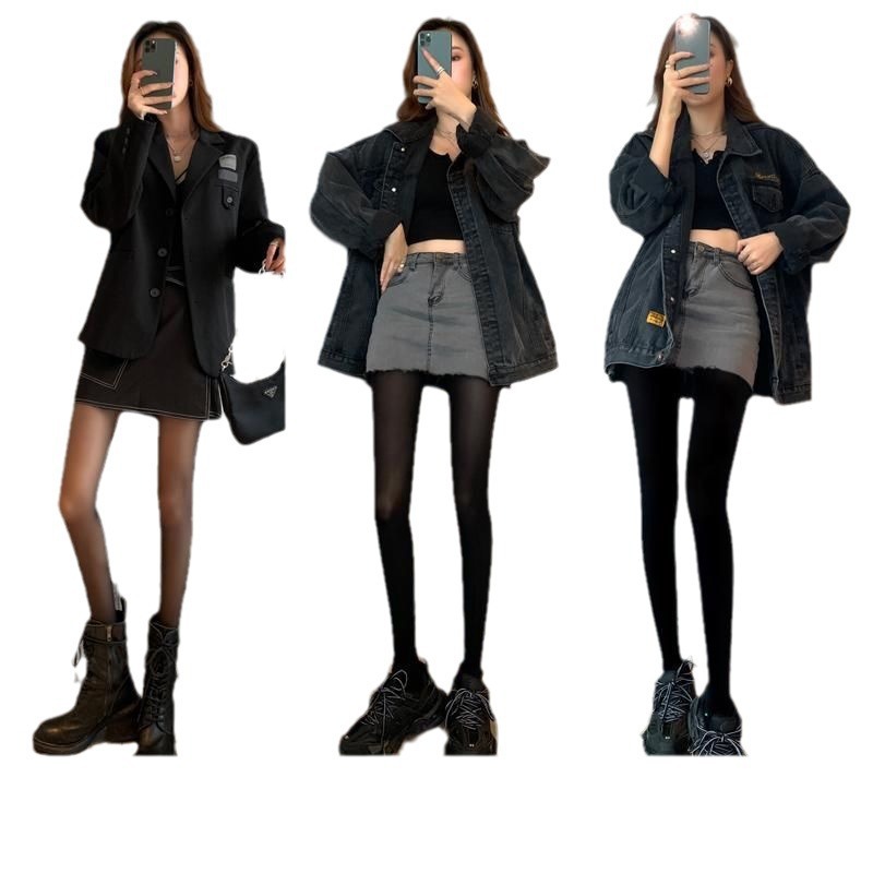 加绒2025新款 菇娘家热压连裤 女秋冬外穿显瘦黑色袜裤 大码 袜打底裤