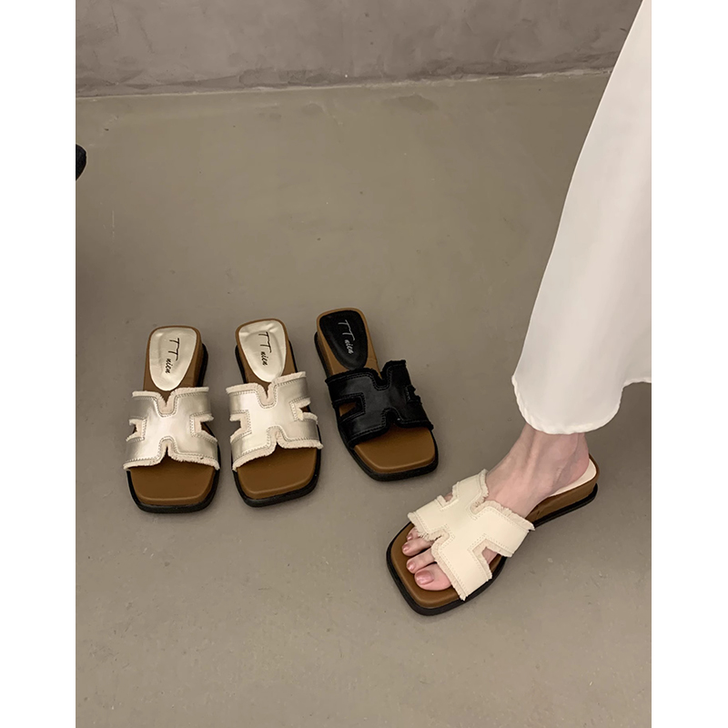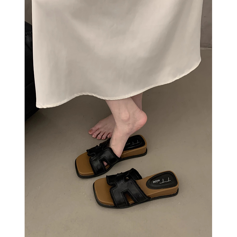 厚底高级感罗马凉拖 女夏外穿2025新款 法式 绝美配裙子坡跟一字拖鞋