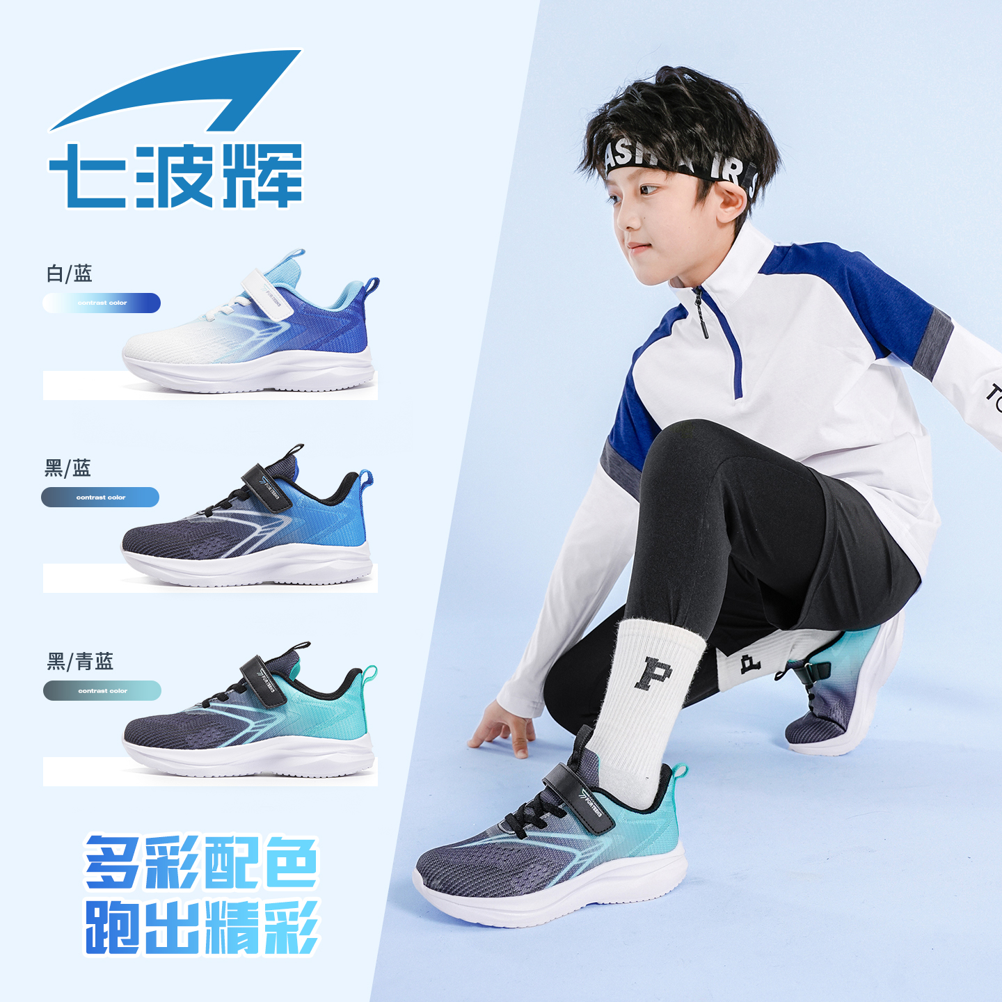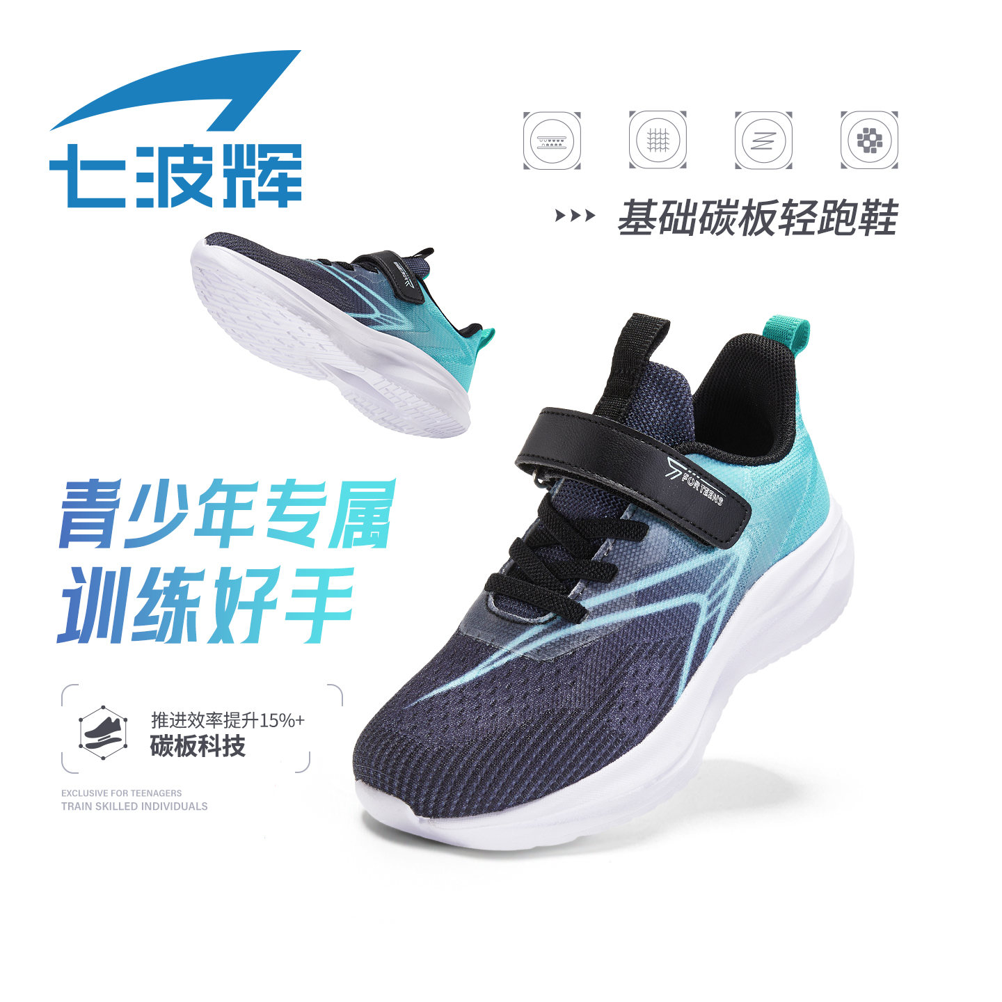 中大童轻便透气网面跑步鞋 七波辉男童鞋 新款 2025秋季 子儿童运动鞋