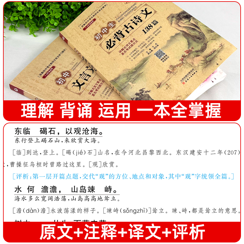 初中必背古诗词和文言文全解一本通初中版 同步完全解读课内外译注与赏析训练初一初二初三七八九7至9年级 全解全练138篇2024人教版