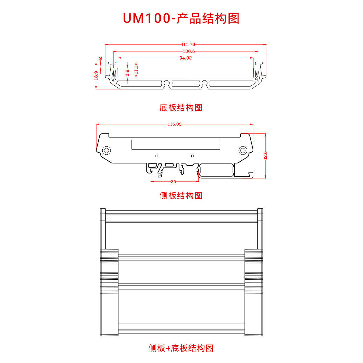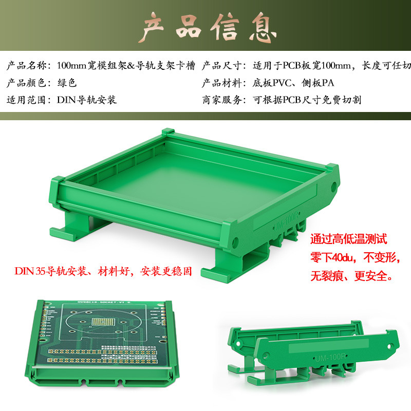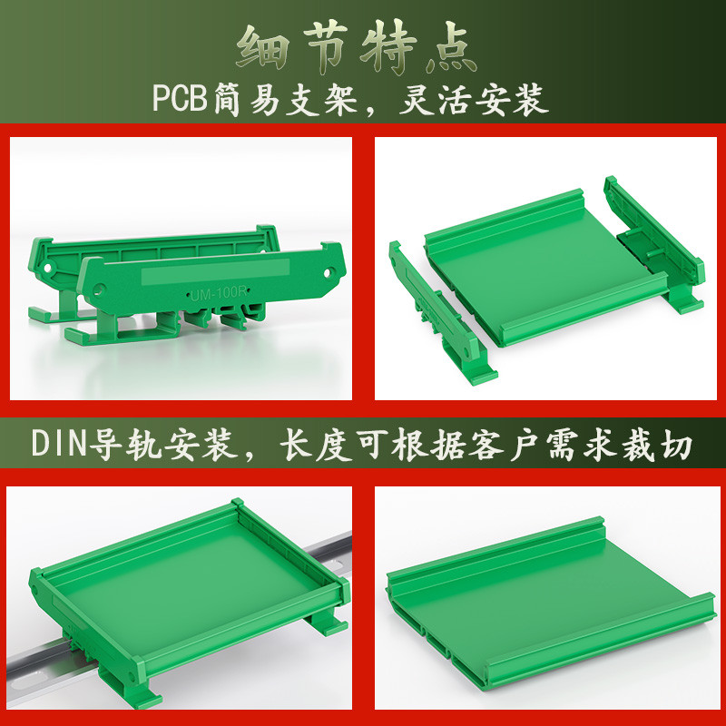 UM100S导轨式 绿色黑色DIN35继电器固定支架 壳体PCB模组架底座安装