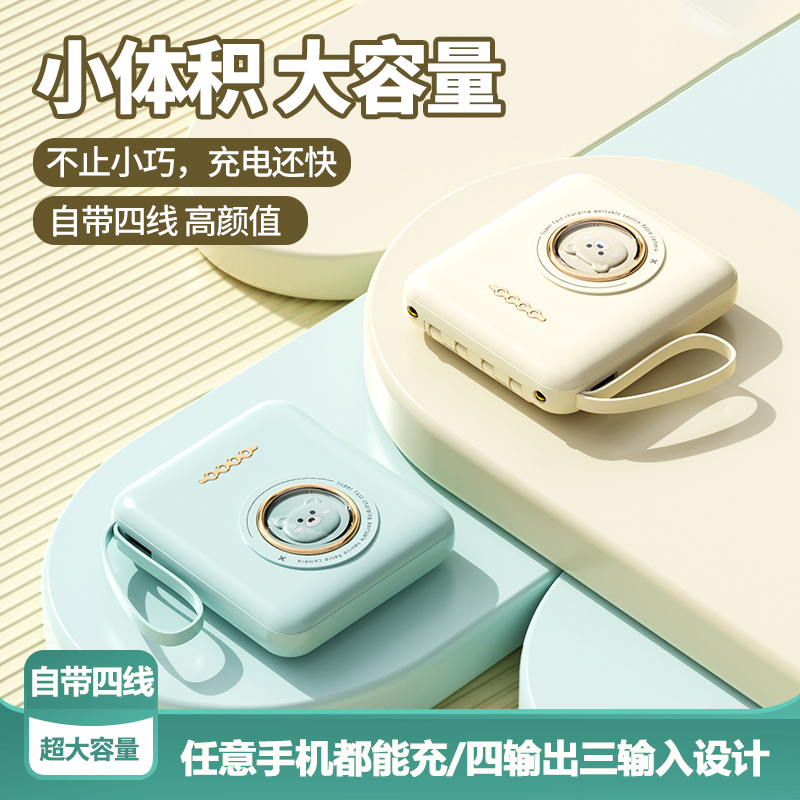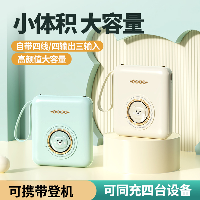 3C认证正品 迷你充电宝超大容量自带线20000毫安超薄小巧便携移动电源快充适用苹果华为手机专用可携带上飞机
