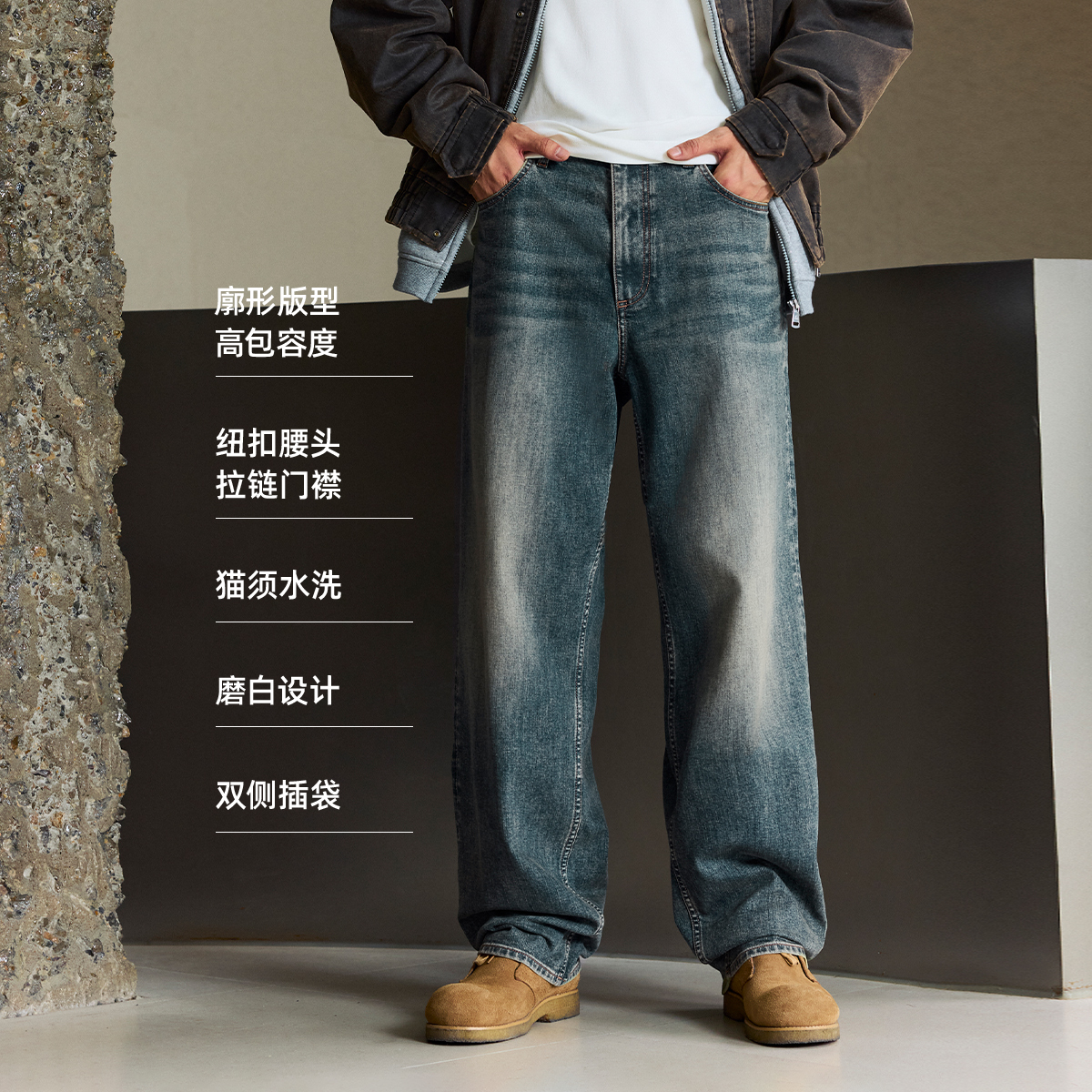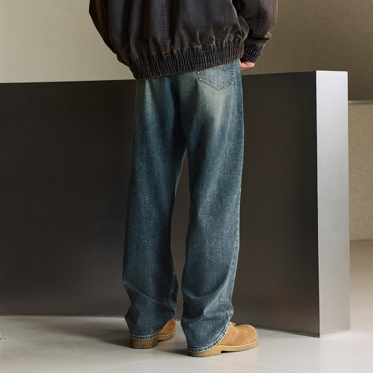 高街vibe阔腿裤 Kuvine秋冬季 cleanfit美式 男款 宽松直筒原色牛仔裤