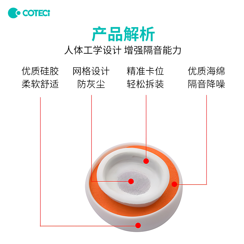降噪耳机帽 COTECi Pro 替换硅胶海绵耳帽多尺寸耳机塞 AirPods