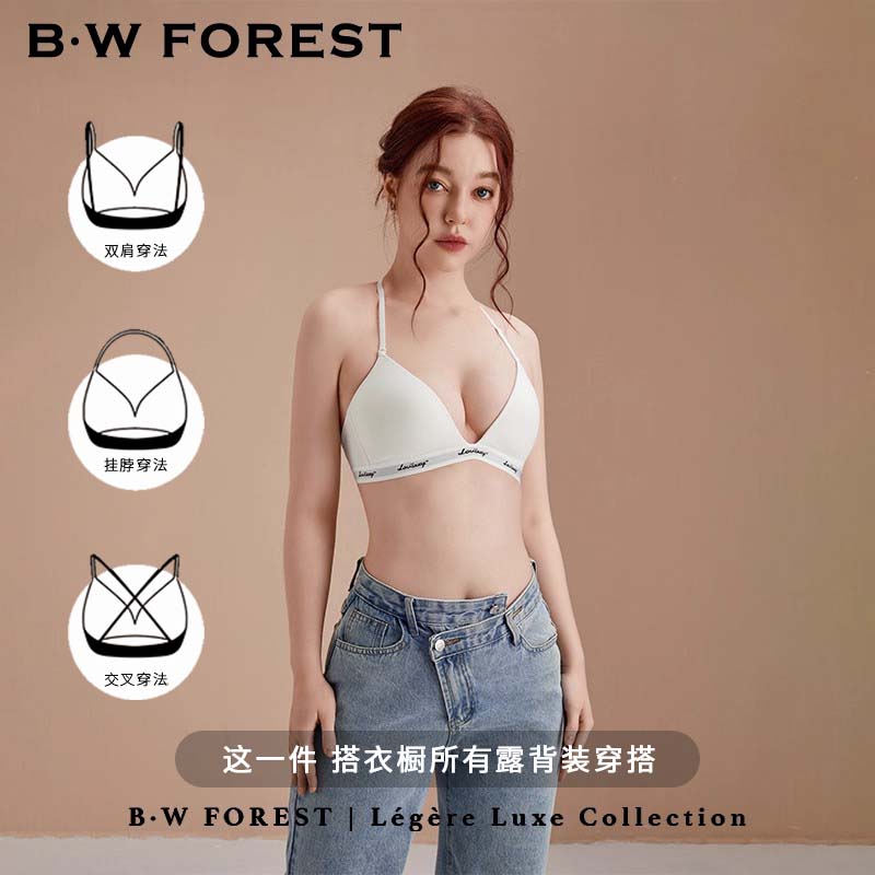 小胸聚拢舒适透气挂脖透背文胸 薄款 BWFOREST法式 三角杯内衣女夏季