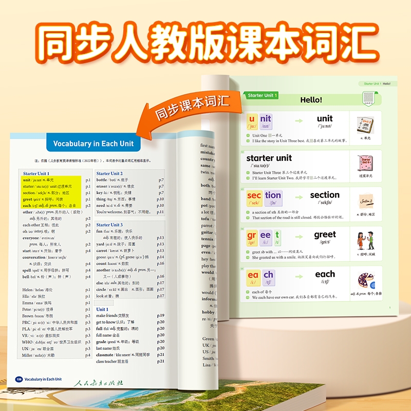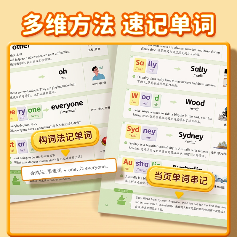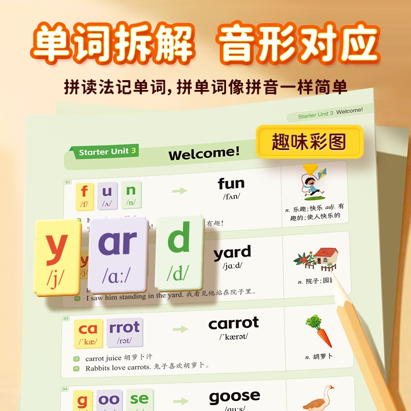 初中英语拼读法速记单词自然拼读人教版 新版 七八年级学生用书上册同步课本教材一本通单词音标语法汇总大全 易蓓图书