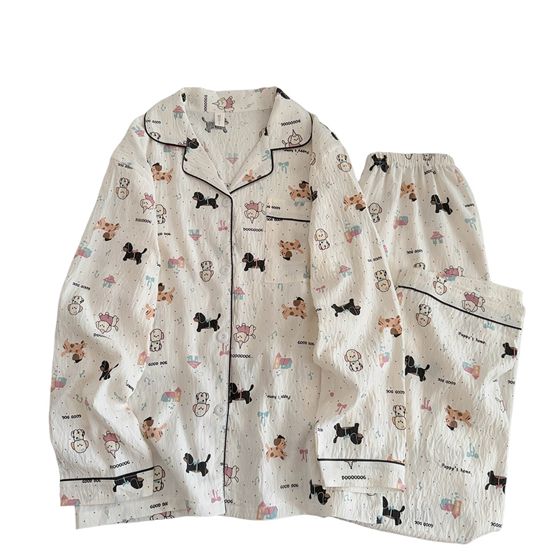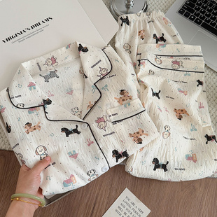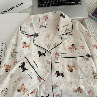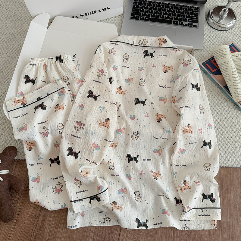 长袖 新款 大码 女士开衫 夏天家居服可外穿 腊肠狗云朵棉睡衣女春秋季